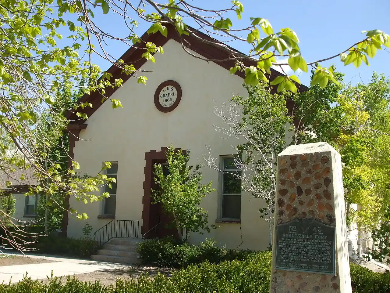 The Grantsville First Ward Meetinghouse, in Grantsville, Utah, United States, is a meeting house of the Church of Jesus Christ of Latter-day Saints (Church) which was built in 1865–1866. It was listed on the National Register of Historic Places in 1982; the listing did not include a 1952 addition to the building. Read more on Wikipedia