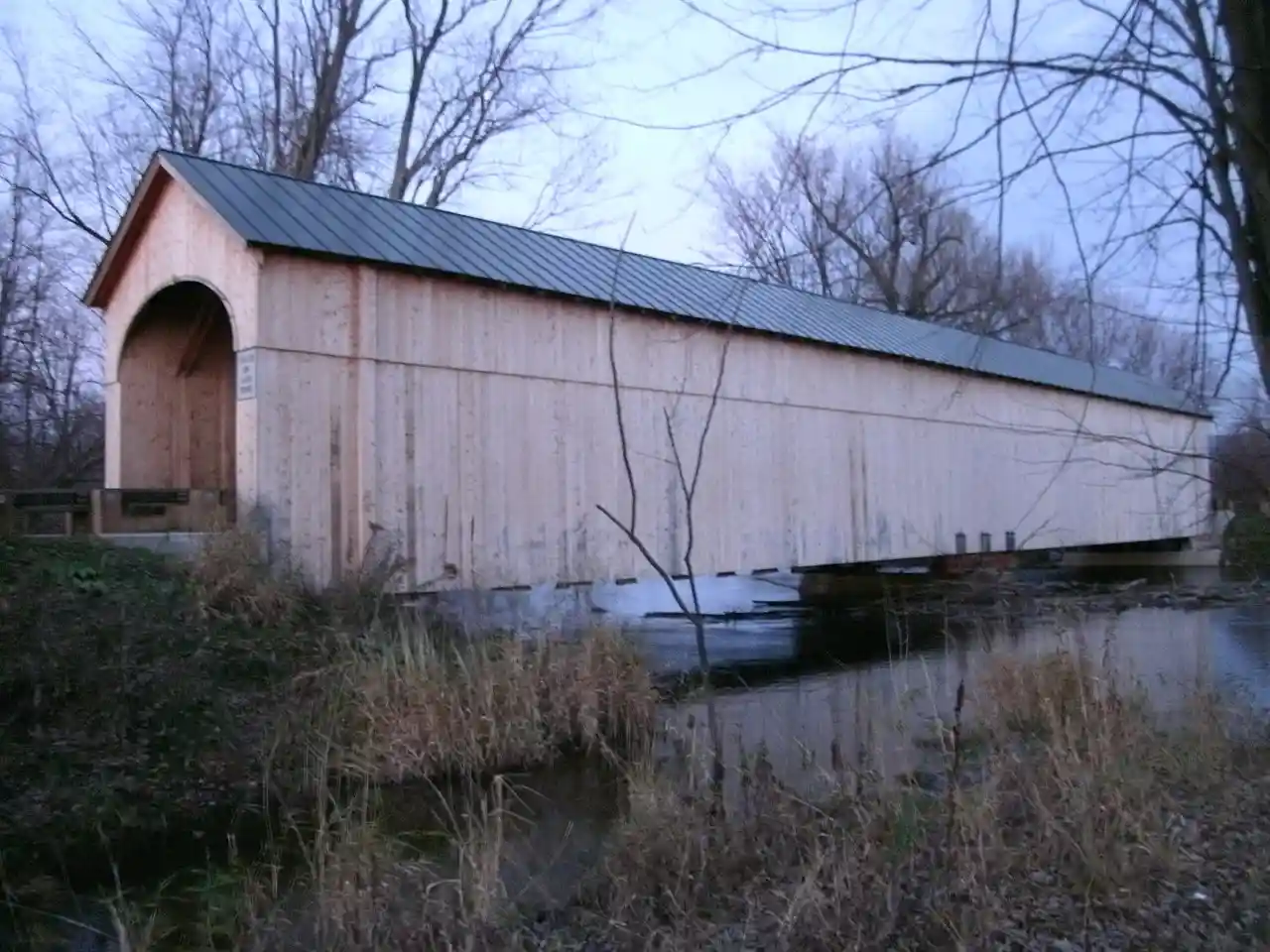 The Cedar Swamp Covered Bridge, also known as the Station Bridge and by various other names, was a historic wooden covered bridge spanning Otter Creek between Cornwall and Salisbury, Vermont. The Town lattice truss bridge was built in 1864-1865 and added to the National Register of Historic Places in 1974. It was destroyed by fire in September 2016. Read more on Wikipedia