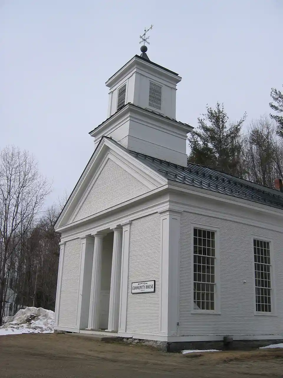 The Ripton Community House, formerly the Ripton Congregational Church, is a historic former church and present community hall on Vermont Route 125 in the village of Ripton, Vermont. Built in 1864 for a Congregationalist church, it has since served as a community clubhouse and town-owned meeting hall, and is a fine local example of vernacular Greek Revival architecture. It was listed on the National Register of Historic Places in 1973. Read more on Wikipedia