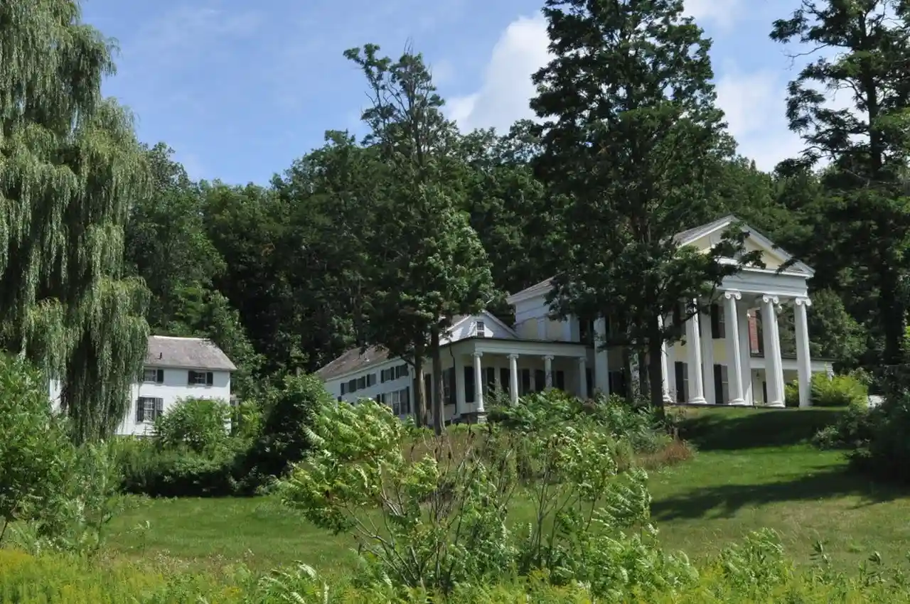 The Wilcox-Cutts House is a historic house on Vermont Route 22A in Orwell, Vermont, USA. Its oldest portions date to 1789, but it is regarded as one of Vermont's finest examples of late Greek Revival architecture, the result of a major transformation in 1843. The house and accompanying farmland, also significant in the development of Morgan horse breeding in the state, was listed on the National Register of Historic Places in 1974. Read more on Wikipedia