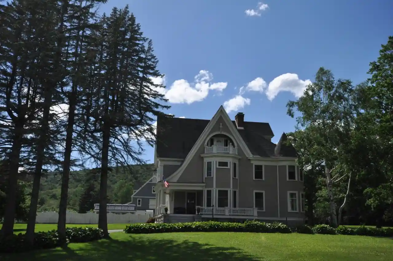 The Tudor House is a historic house on Vermont Route 8 in Stamford, Vermont. Built in 1900 by what was probably then the town's wealthiest residents, this transitional Queen Anne/Colonial Revival house is one of the most architecturally sophisticated buildings in the rural mountain community. It was listed on the National Register of Historic Places in 1979. Read more on Wikipedia