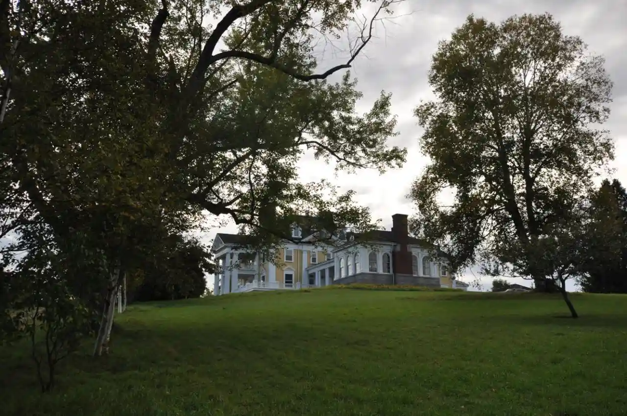 Burklyn Hall is a historic estate house on Darling Hill Road, straddling the town line between Burke and Lyndon, Vermont, USA. Built in the early 1900s for Elmer Darling, a locally-born New York hotelier, it is one of Vermont's largest and most opulent Colonial Revival houses, and was the centerpiece of a large country estate. It was listed on the National Register of Historic Places in 1973. Read more on Wikipedia