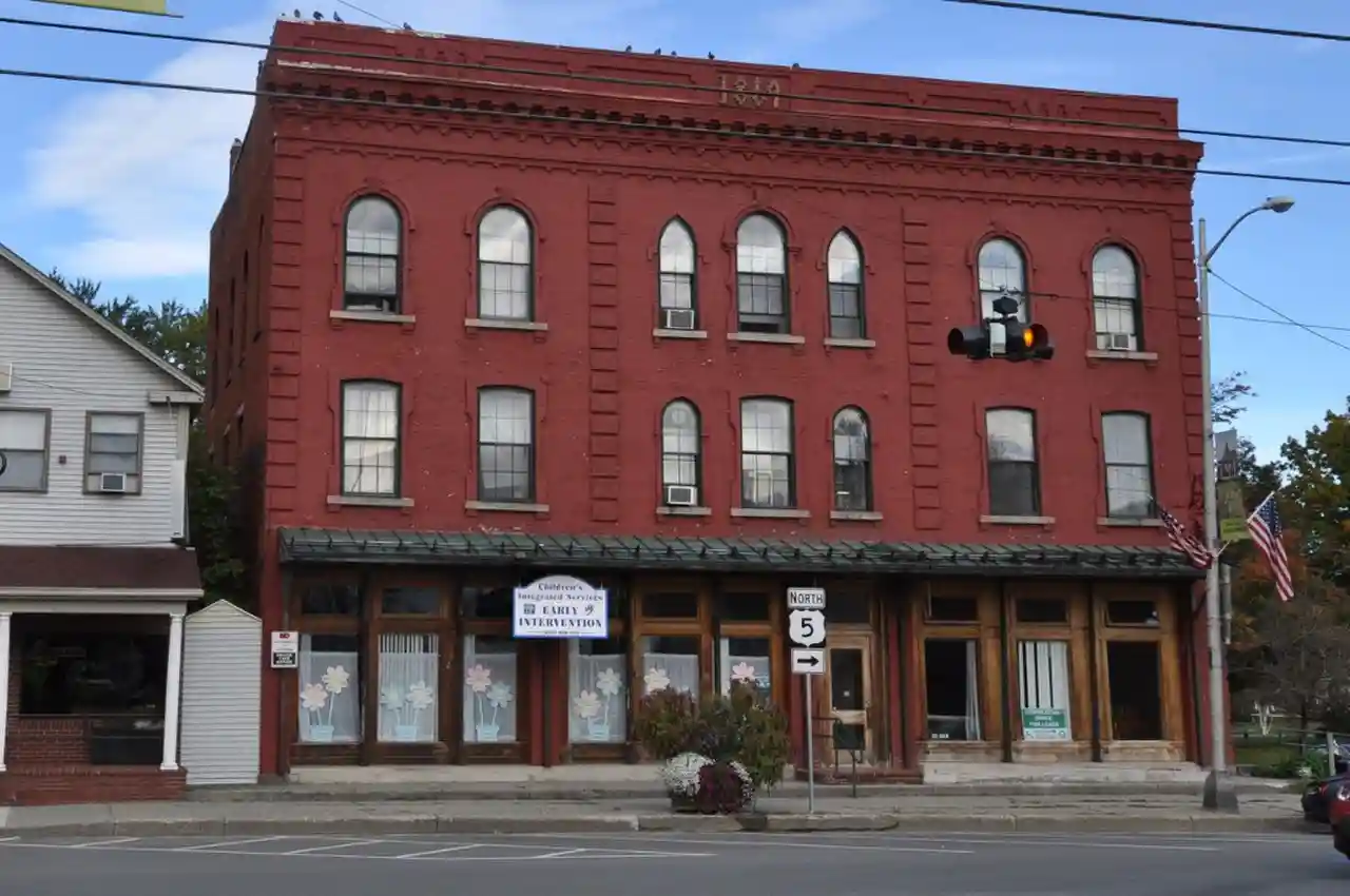 The Mathewson Block is a historic commercial building at 101 Main Street in the center of Lyndonville, Vermont. Built in 1869, it was the first brick commercial building erected in Lyndonville, which was founded in 1866. It was listed on the National Register of Historic Places in 1999. Read more on Wikipedia