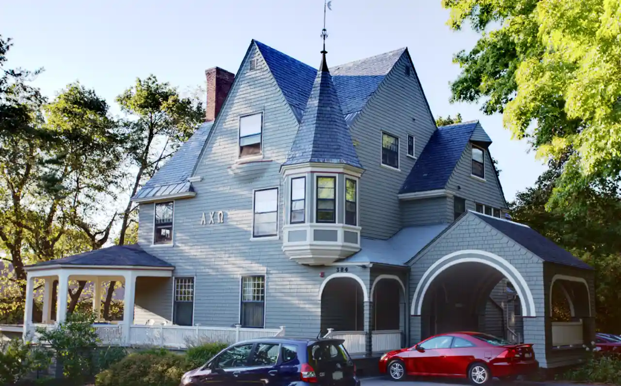 The Daniel Webster Robinson House is a historic house at 384-388 Main Street in Burlington, Vermont. It was designed by the Boston firm of Peabody and Stearns and built in 1885-1886 for prepared lumber magnate Daniel Webster Robinson. Since 1931 it has housed the Alpha Iota Chapter of the Alpha Chi Omega sorority affiliated with the University of Vermont (UVM). It was listed on the National Register of Historic Places in 1982. Read more on Wikipedia