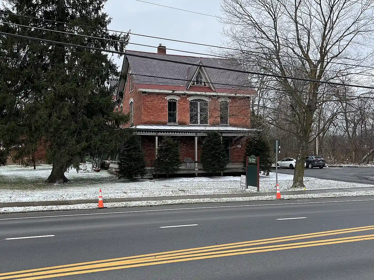 The Lee Tracy House is a historic house on United States Route 7 in the village center of Shelburne, Vermont. Built in 1875, it is one of a small number of brick houses built in the town in the late 19th century, and is architecturally a distinctive vernacular blend of Gothic and Italianate styles. It was listed on the National Register of Historic Places in 1983. Read more on Wikipedia