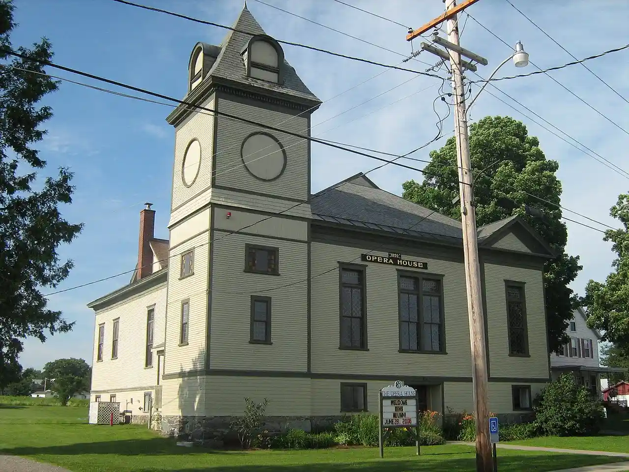 The Enosburg Opera House is a historic performance venue and meeting space at 123 Depot Street in Enosburg Falls, Vermont. Built in 1892 by the B.J. Kendall Company, a prominent local employer, it has been used since then as a regionally prominent performance venue. It also serves as the site of Enosburg's town meetings. It was listed on the National Register of Historic Places in 1978. Read more on Wikipedia