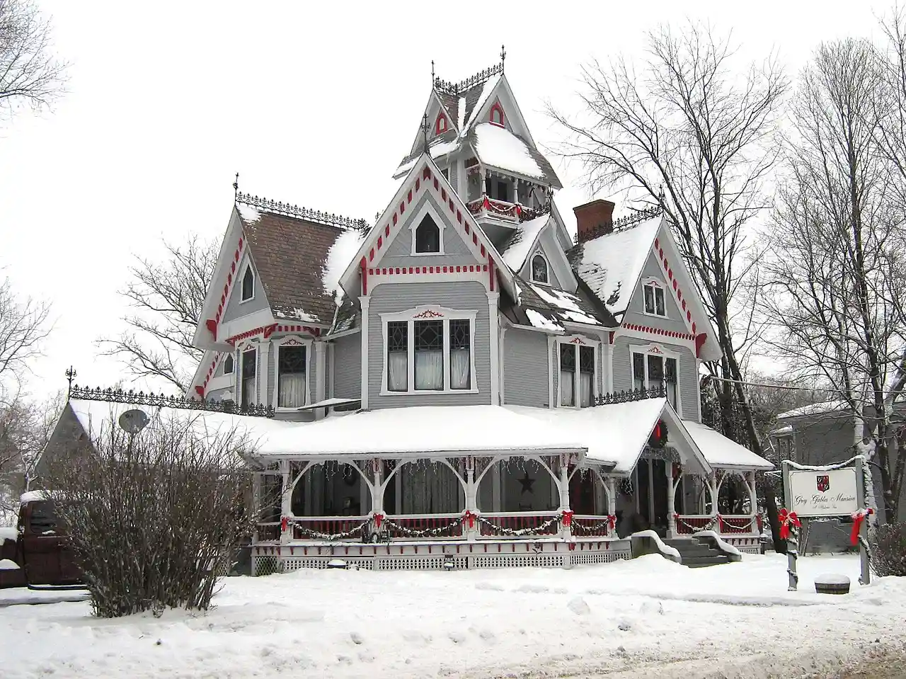 The Sheldon Boright House, also known as the Grey Gables, is a historic house at 122 River Street in Richford, Vermont. Built in 1890 for a prominent local businessman, it is a fine example of a pattern-book design by Palliser, Palliser & Company, and may be the only instance of a house found on the cover of one of that company's pattern books. Now a bed and breakfast inn, it was listed on the National Register of Historic Places in 1989. Read more on Wikipedia