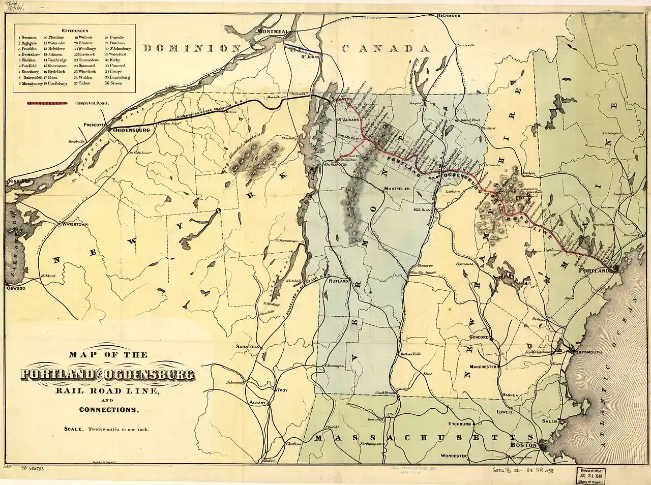 The Morrisville Depot located at 10 Depot Street (aka 10 Railroad Street) in Morrisville, Vermont, is a decommissioned historic train station. Built in 1872 to serve the Portland and Ogdensburg Railway, the depot was known as the most important train station for the Vermont lumber industry, for its decorative architectural ornament, and for housing the headquarters of the St. Johnsbury and Lamoille County Railroad from 1959 to the early 1970s. It was subsequently converted into a restaurant. The Morrisville Depot was added to the National Register of Historic Places in 1982 as building #15 in the Morrisville Historic District. Read more on Wikipedia