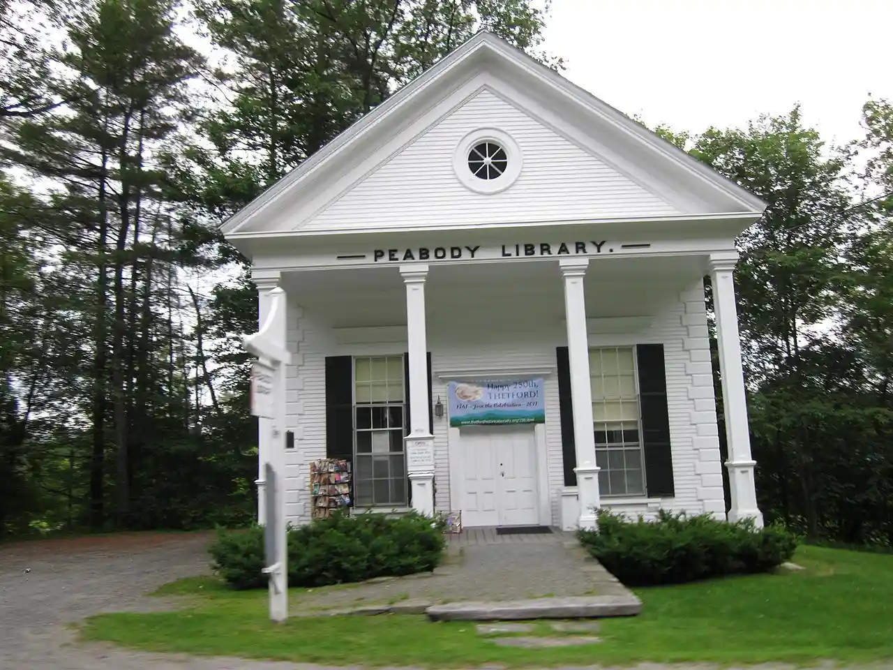 The Peabody Library is one of two public libraries buildings in Thetford, Vermont, USA. Serving the village of Post Mills, it was built in 1867, and is the oldest active library in the state federation of public libraries. It was listed on the National Register of Historic Places in 1984. Read more on Wikipedia