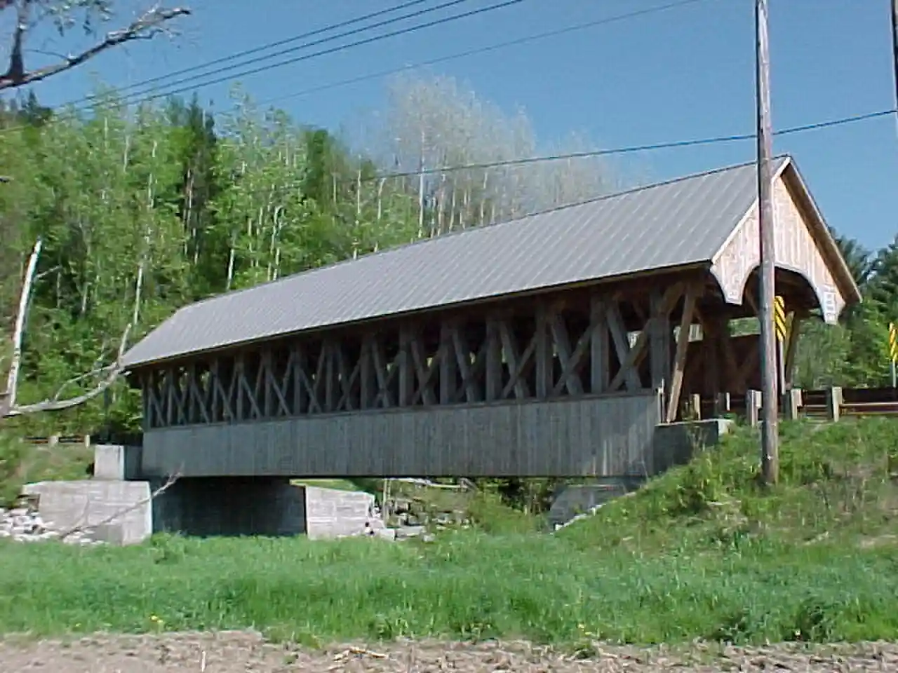 The Orne Covered Bridge is a replica of a historic bridge on Back Coventry Road in Irasburg, Vermont. Built in 2000, it is a replacement for a 19th-century bridge which stood on the site until it was destroyed by arson in 1997. The historic bridge was listed on the National Register of Historic Places in 1974. Read more on Wikipedia