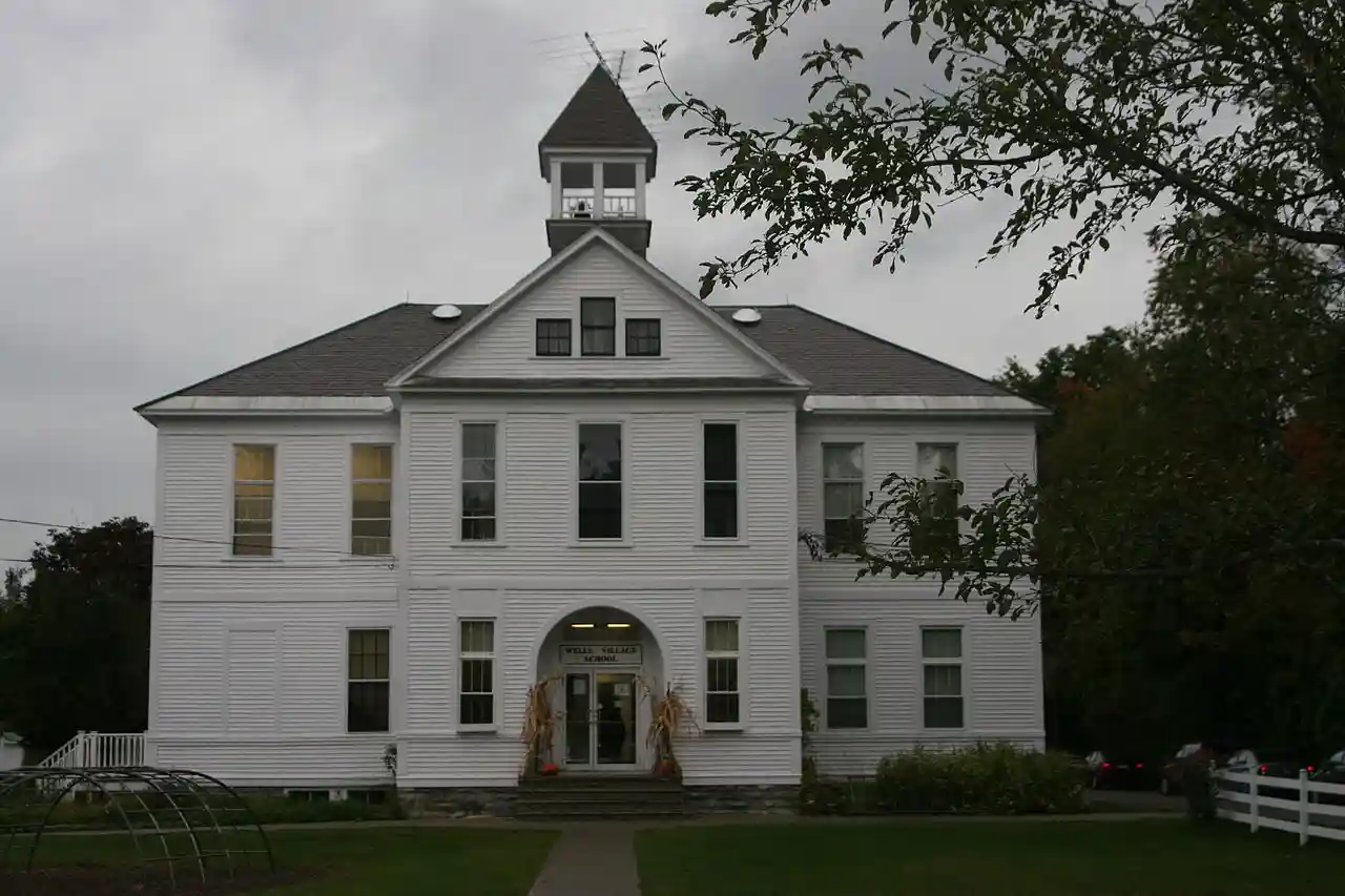 The Wells Village School is a public school serving grades K through 6 in Wells, Vermont. Built about 1899, it is a fine and imposing local example of Colonial Revival architecture, designed to meet the latest school standards of the time. It was listed on the National Register of Historic Places in 1993. Read more on Wikipedia