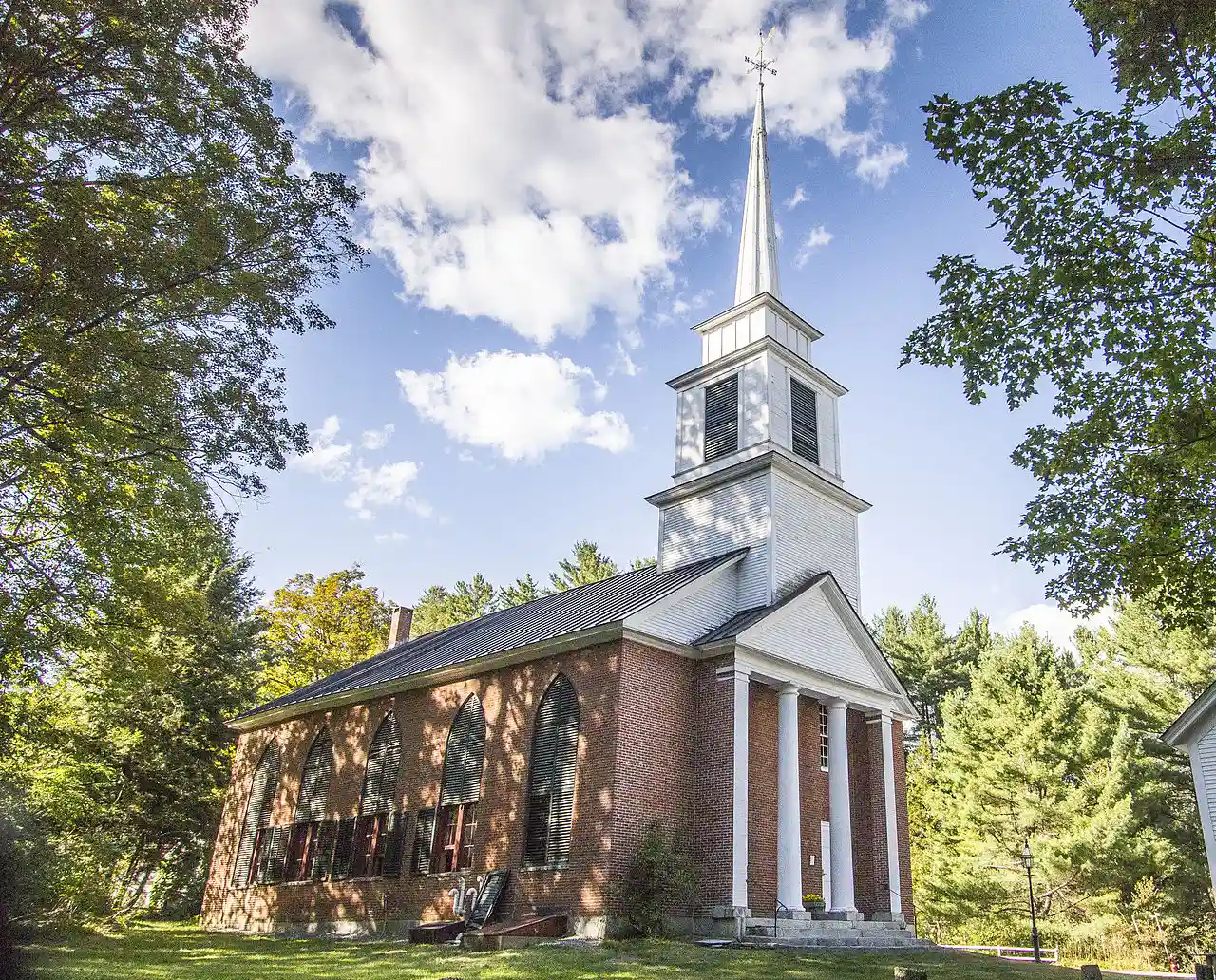 The Grafton Congregational Church, known locally as The Brick Church, is a historic church on Main Street in Grafton, Vermont. Built in 1833, it is a fine local example of vernacular Greek Revival and Gothic Revival religious architecture. It was listed on the National Register of Historic Places in 1979. Grafton's current Congregationalist (United Church of Christ) congregation now meets primarily in the "White Church" at 55 Main Street. Read more on Wikipedia