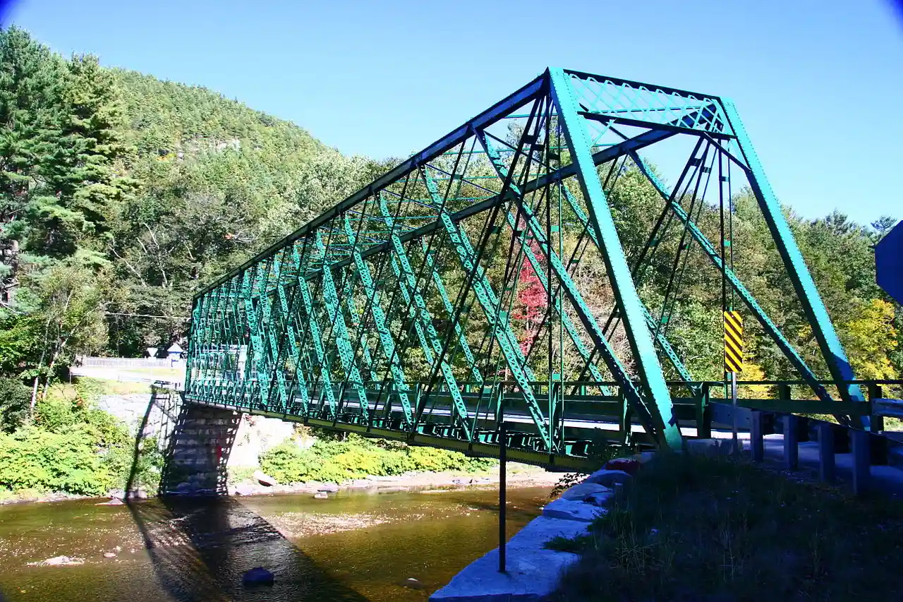The Rice Farm Road Bridge is a historic bridge in Dummerston, Vermont. It is an iron Warren through truss, spanning the West River between Vermont Route 30 and Rice Farm Road. Built in 1892, it is one of the state's oldest surviving metal truss bridges. It was listed on the National Register of Historic Places in 1995. Read more on Wikipedia