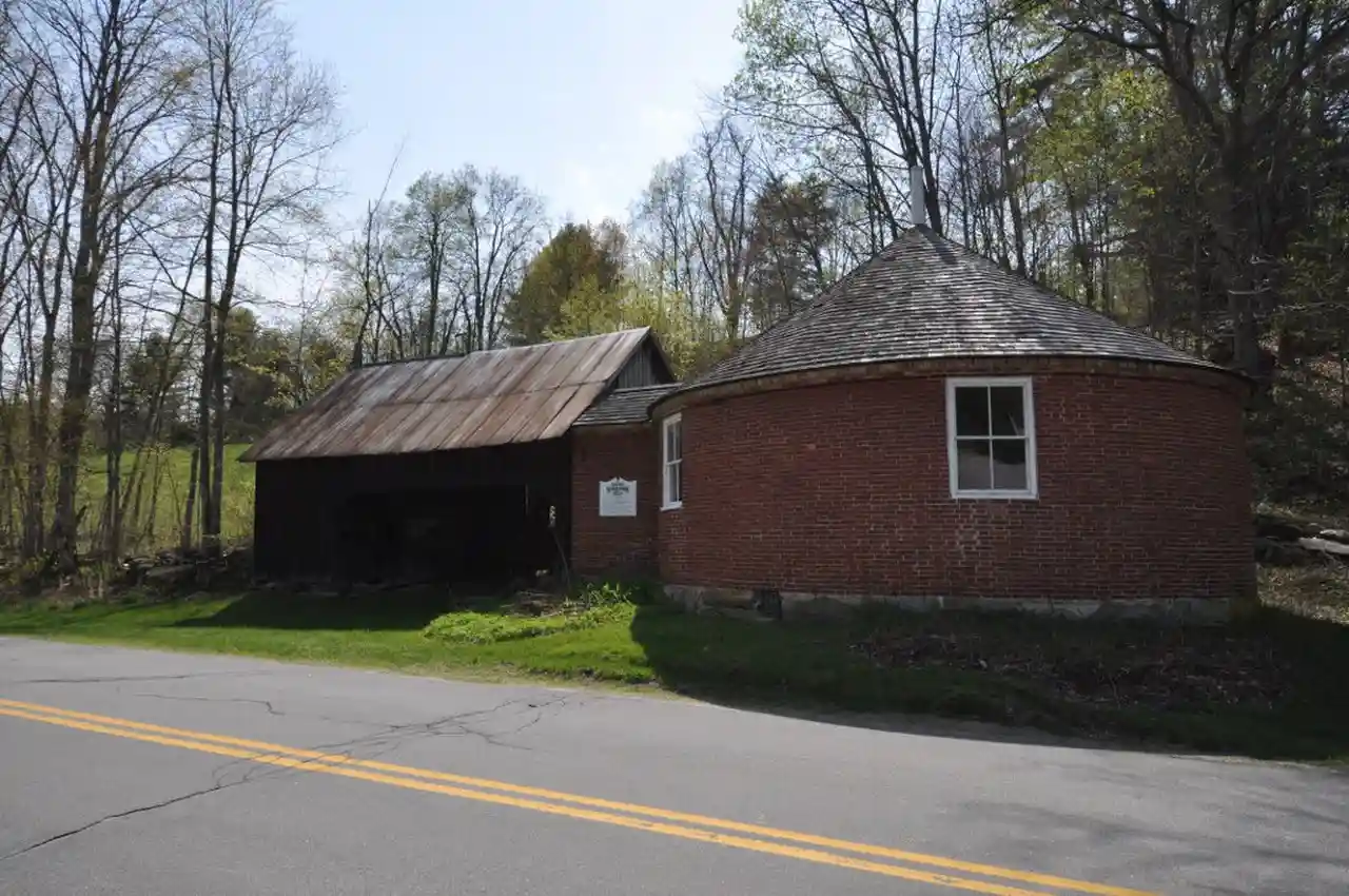 The Round Schoolhouse is a historic school building on Grassy Brook Road in Brookline, Vermont. Built in 1822, it is the oldest brick schoolhouse in Windham County, and further distinctive for its round shape. From 1929 to 1989 it served as Brookline's town hall. It was listed on the National Register of Historic Places in 1977. Read more on Wikipedia