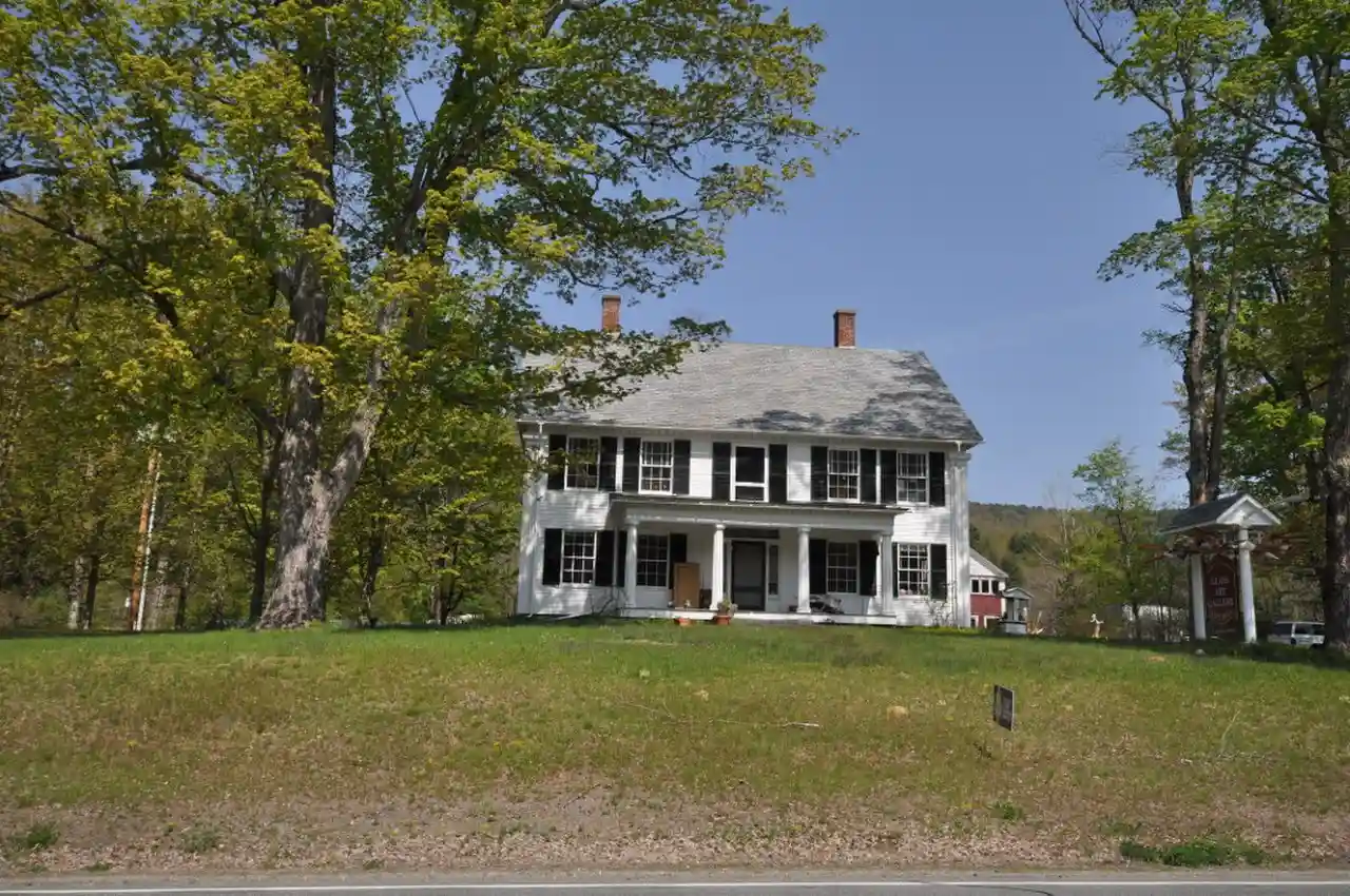 The Wheelock House is a historic house at 1096 Vermont Route 30 in Townshend, Vermont. Built in stages in the mid-19th century, it exhibits an unusual combination of Greek Revival and southern Gothic Revival features that is not otherwise known in Vermont. It is also possible that parts of the house were built using slave labor, an extremely rare occurrence in the state. The property, which now houses an art gallery, was listed on the National Register of Historic Places in 1986. Read more on Wikipedia