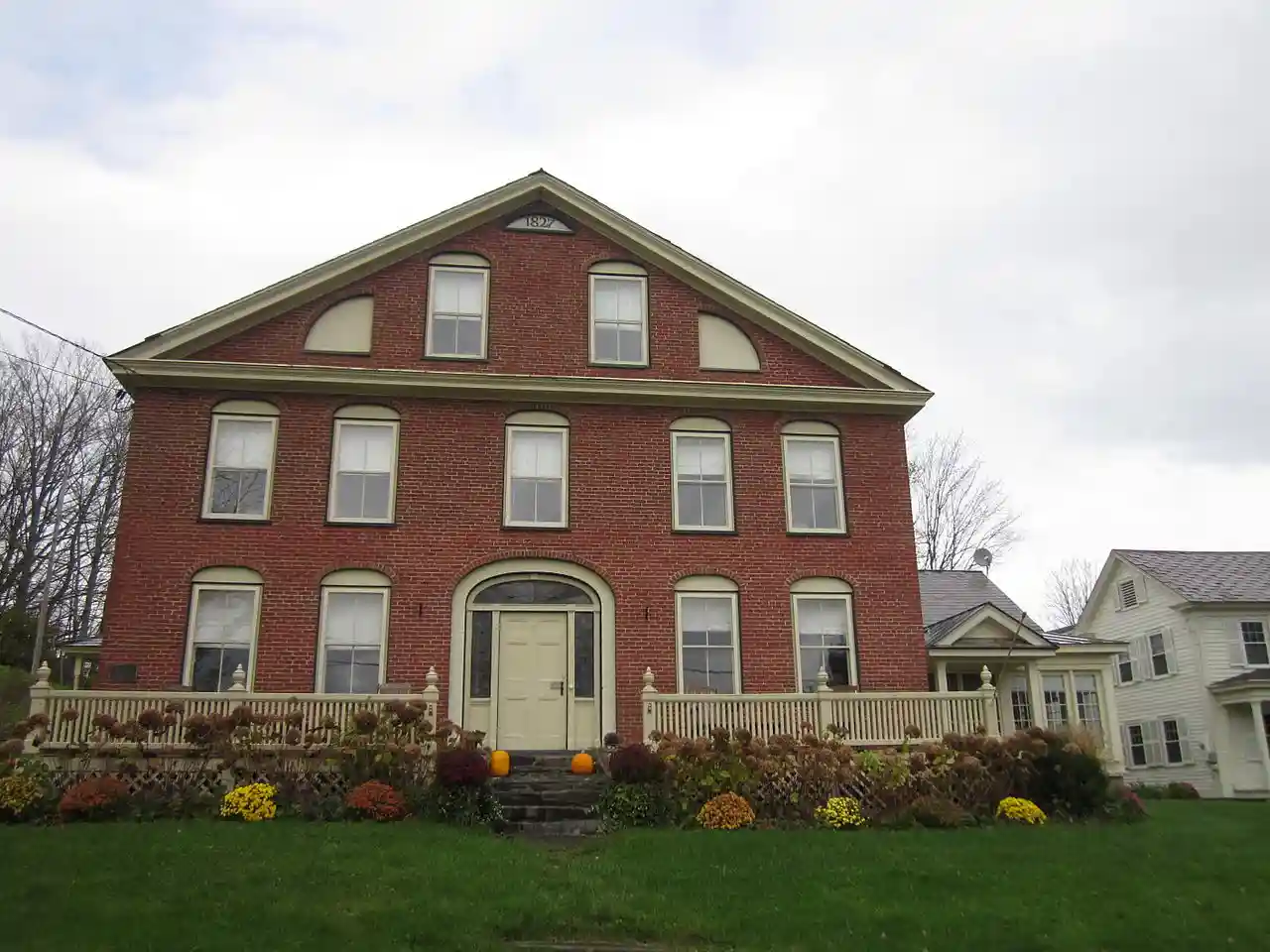 The John Wilder House is a historic house on Lawrence Hill Road in the village center of Weston, Vermont. Built in 1827 for a prominent local politician, it is a distinctive example of transitional Federal-Greek Revival architecture in brick. Some of its interior walls are adorned with stencilwork attributed to Moses Eaton. The house was listed on the National Register of Historic Places in 1983. Read more on Wikipedia