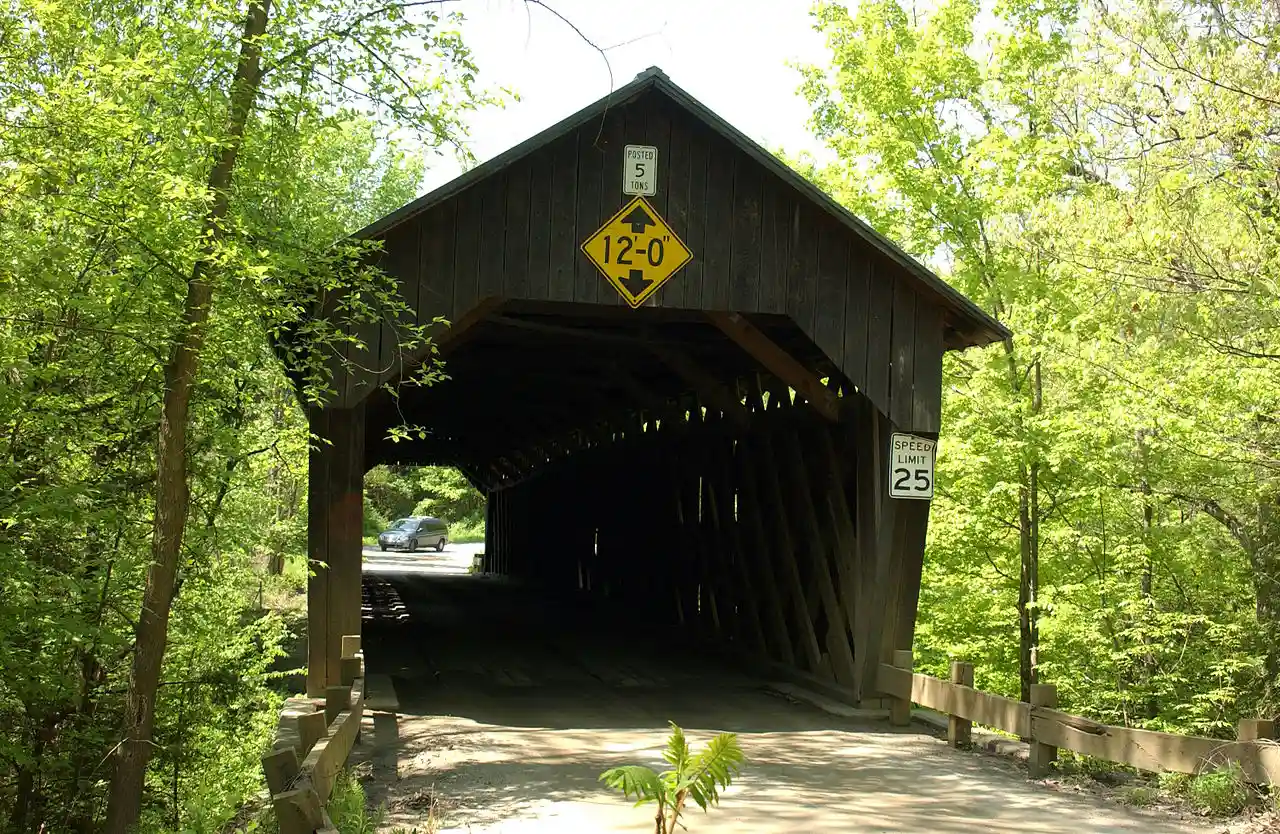 The Martin's Mill Covered Bridge is a wooden covered bridge spanning Lull's Brook on Martinsville Road in Hartland, Vermont. Built about 1880, it is one of two surviving 19th-century covered bridges in the town. It was listed on the National Register of Historic Places in 1973. Read more on Wikipedia