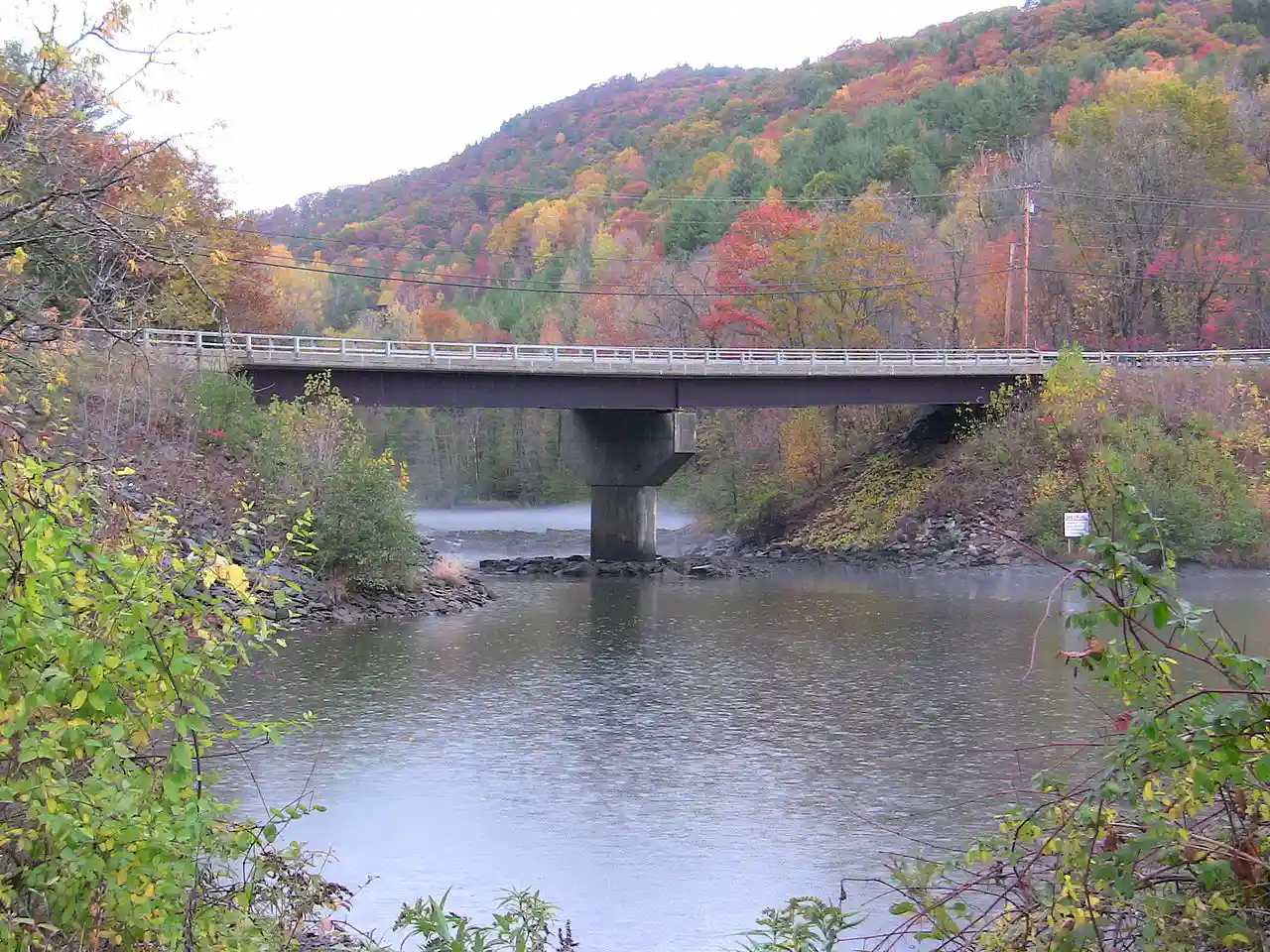 The Ottauquechee River Bridge is a steel girder bridge carrying United States Route 5 across the Ottauquechee River in Hartland, Vermont. The bridge replaced a c. 1930 Warren deck truss bridge, built in the wake of Vermont's devastating 1927 floods, and listed on the National Register of Historic Places in 1990. Read more on Wikipedia
