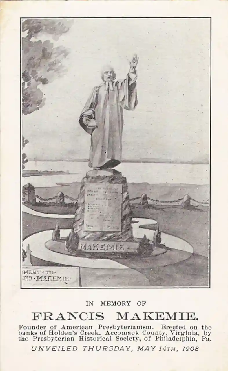 Pocomoke Farm, now known as the Makemie Monument Park, is a historic site in rural Accomack County, on Virginia's Eastern Shore. The site is the location of the home and family cemetery of Francis Makemie (1658–1708), acknowledged as a founding leader of Presbyterianism in America. Now maintained as a park in honor of Makemie, the site includes a marker built in 1907 from building bricks and cemetery wall remnants found in the area. Read more on Wikipedia