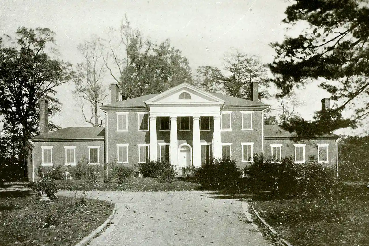 Estouteville is a historic home located near Powell Corner, Albemarle County, Virginia. The main house was begun in 1827, and consists of a two-story, seven-bay central block, 68 feet by 43 feet, with two 35 feet by 26 feet, three-bay, single-story wings. It is constructed of brick and is in the Roman Revival style. A Tuscan cornice embellishes the low hipped roofs of all three sections, each of which is surmounted by tall interior end chimneys. The interior plan is dominated by the large Great Hall, a 23-by-35-foot richly decorated room. Also on the property are a contributing kitchen / wash house; a square frame dairy (now a chicken house); a square, brick smokehouse, probably built in the mid-19th century, also covered with a pyramidal roof; and a frame slave quarters. and Accompanying photo Read more on Wikipedia