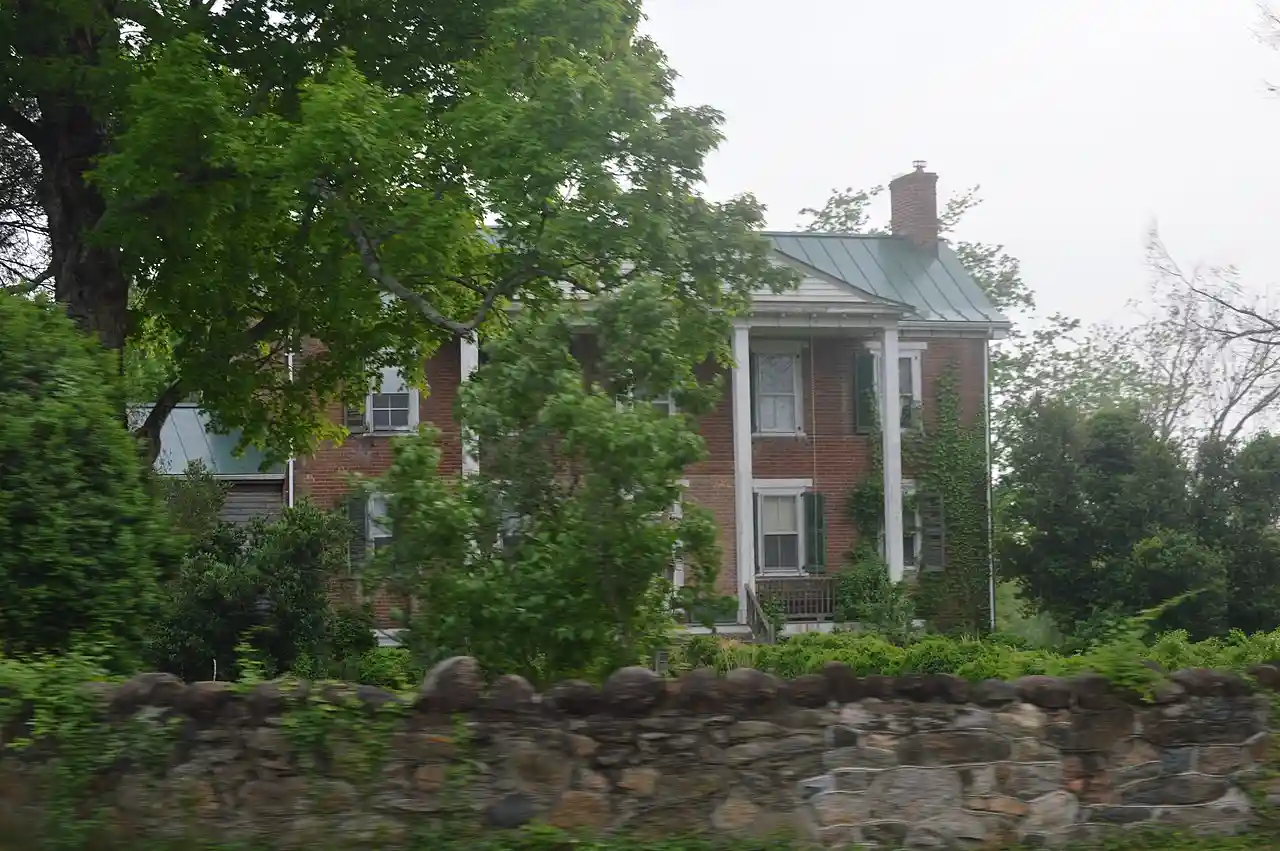 Woodlands is a historic home and farm complex located near Charlottesville, Albemarle County, Virginia. The main block was built in 1842–1843, and is a brick I-house with Federal detailing. It was expanded in the 1890s by a two-story frame-and-brick rear "T" with one- and two-story wraparound verandahs. Also on the property is a tall, narrow frame barn, dated to the 1840s, and later farm buildings erected in the 1910s and '20s including a frame dairy barn, a glazed-tile silo, and a stone-and-frame horse barn. and Accompanying four photos Read more on Wikipedia
