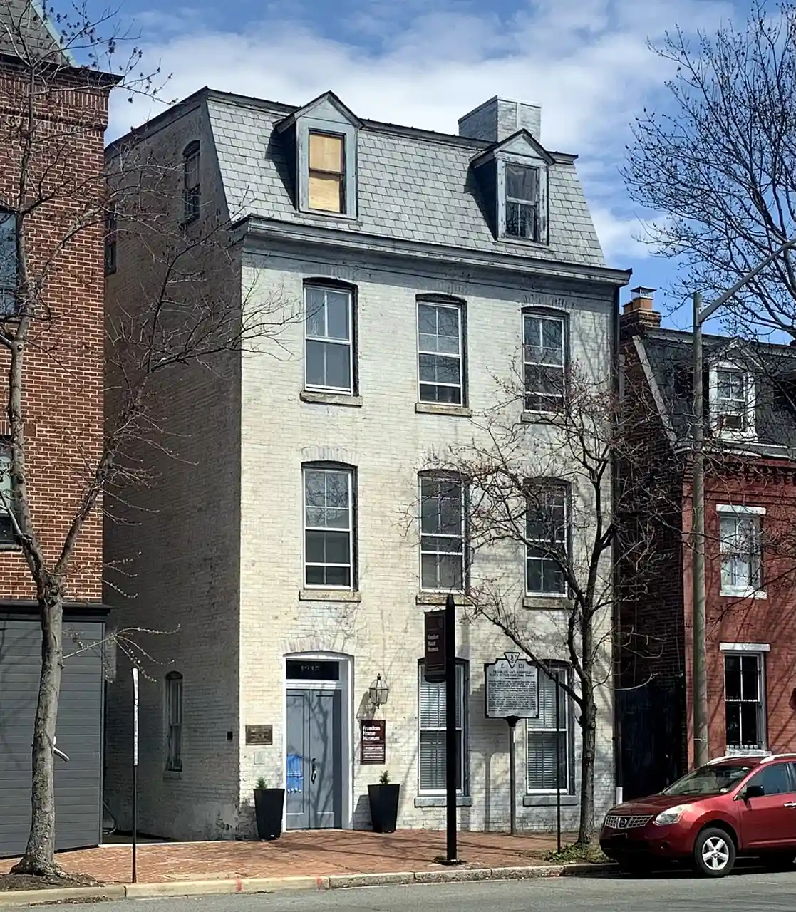 The Franklin and Armfield Office, which houses the Freedom House Museum, is a historic commercial building in Alexandria, Virginia (until 1846, the District of Columbia). Built c. 1810–1820, it was first used as a private residence before being converted to the offices of the largest slave trading firm in the United States, started in 1828 by Isaac Franklin and John Armfield. Another source, using ship manifests (lists of slaves) in the National Archives, gives the number as "at least 5,000". Read more on Wikipedia