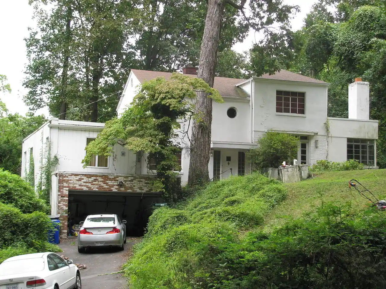 Earle Micajah Winslow House is a historic home located at Arlington County, Virginia. It was built in 1940, and is a two-story, concrete block structure veneered in brick and covered in a smooth stucco finish that is painted white. It has a shallow-pitched, side-gabled roof. A square projecting bay has a flat roof and a curved bay is crowned by a conical roof and a shallow hipped roof. The house features smooth walls, flat and shallow-pitched roofs, bands of wrapping windows, rounded corners, and a complete lack of applied ornamentation in the Streamline Moderne style. and Accompanying four photos Read more on Wikipedia