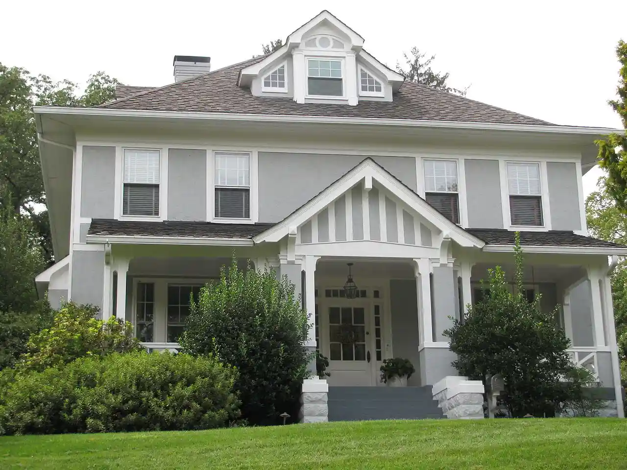 The Saegmuller House is a historic home located in Arlington, Virginia. It was built between 1925 and 1927, and is -story, stuccoed frame central-hall plan dwelling with Prairie School influences. It sits on a concrete block foundation and has a pyramidal roof. It features an original front porch with large piers and columns and a prominent central gable and deep overhanging eaves. The house was once associated with the Saegmuller dairy farms operations. and Accompanying three photos Read more on Wikipedia