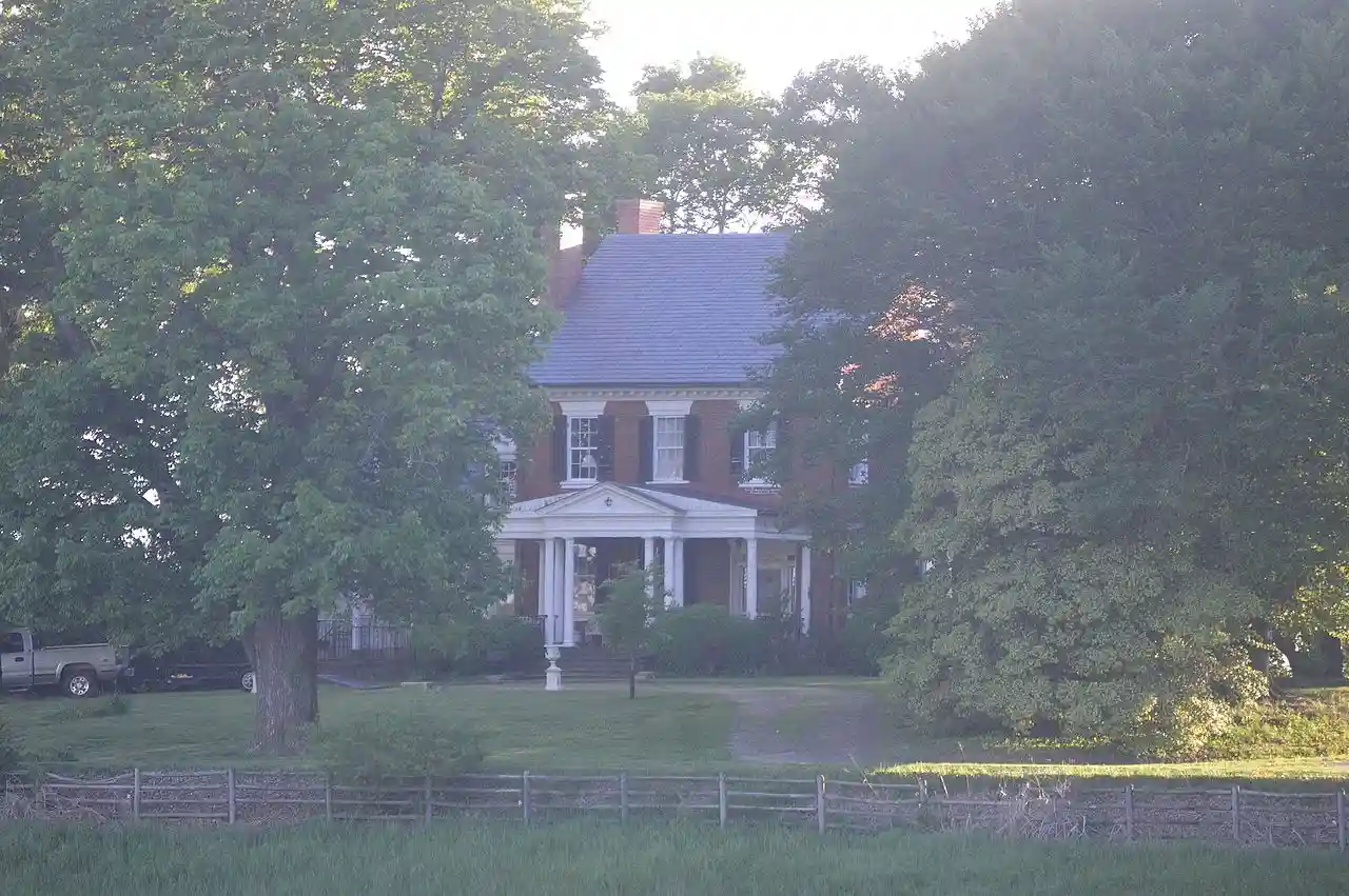 Elk Hill is a historic plantation house located near Forest, Bedford County, Virginia. It was built about 1797, and consists of a -story, three bay brick central section with flanking wings in the Federal style. It has a slate gable roof and a front porch added in 1928, when restored by the architect Preston Craighill. The main block has twin brick exterior chimneys. Also on the property are a contributing small, handsome brick office, a weatherboarded cook's house and storeroom, a lattice wellhouse, and icehouse. and Accompanying photo Read more on Wikipedia