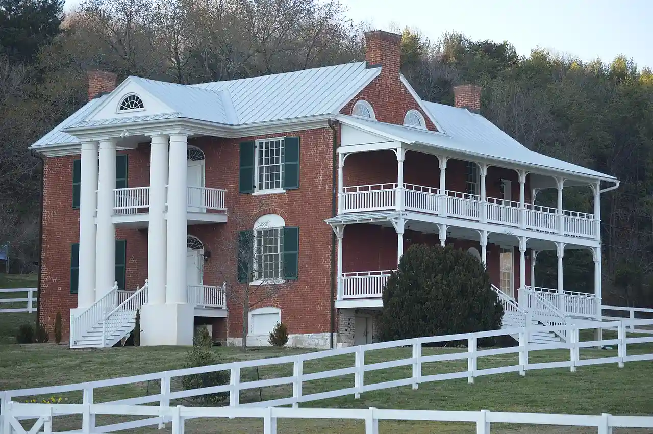 Glen Maury, also known as the Paxton Place and Elisha Paxton's house, is a historic home located in Rockbridge County, Virginia, near the independent city of Buena Vista. It was built between 1829 and 1832, and is a -story, brick dwelling. It sits on a high basement, made of native stone, and has a two-story rear ell addition. The front facade features a somewhat crude, two-story, Doric order Classical Revival portico with paired columns. The river side is dominated by a five-bay, two-story verandah with turned wooden posts and simple brackets. It was added about 1900. and Accompanying photo Read more on Wikipedia