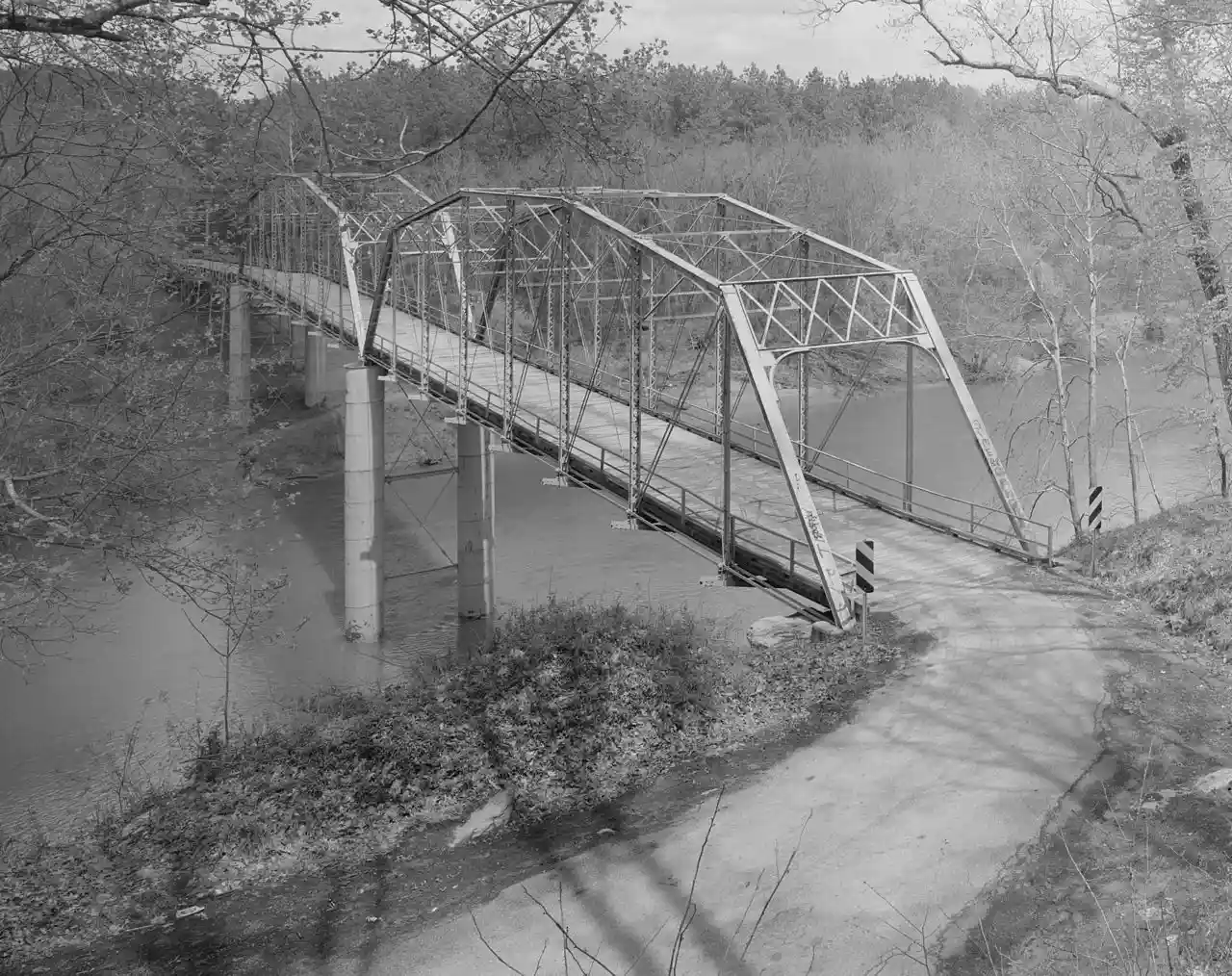Clarkton Bridge was a historic Pratt truss bridge located over the Staunton River near Nathalie, in Charlotte County, Virginia. It was built in 1902 by the Virginia Bridge & Iron Co., and was the only remaining metal truss structure in Virginia built for highway purposes, which was supported by steel cylinder piers. It consisted of two camelback, pin-connected steel through truss channel spans, and twelve steel deck beam approach spans. The overall dimensions of the bridge approach and truss spans were as follows: north approach, with twelve deck spans; north truss, ; south truss, . The total length of the bridge was . and Accompanying two photos Read more on Wikipedia