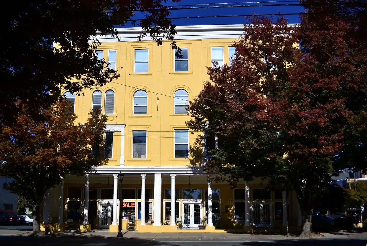 Hotel Gleason/Albemarle Hotel, Imperial Cafe is a historic hotel and commercial building located at Charlottesville, Virginia. It was built in 1896, and has a three-bay, three-story pressed-brick facade raised above the ground-floor recessed loggia in the Late Victorian style. The loggia is supported on four Corinthian order columns. The hotel closed in 1976. and Accompanying photo Read more on Wikipedia