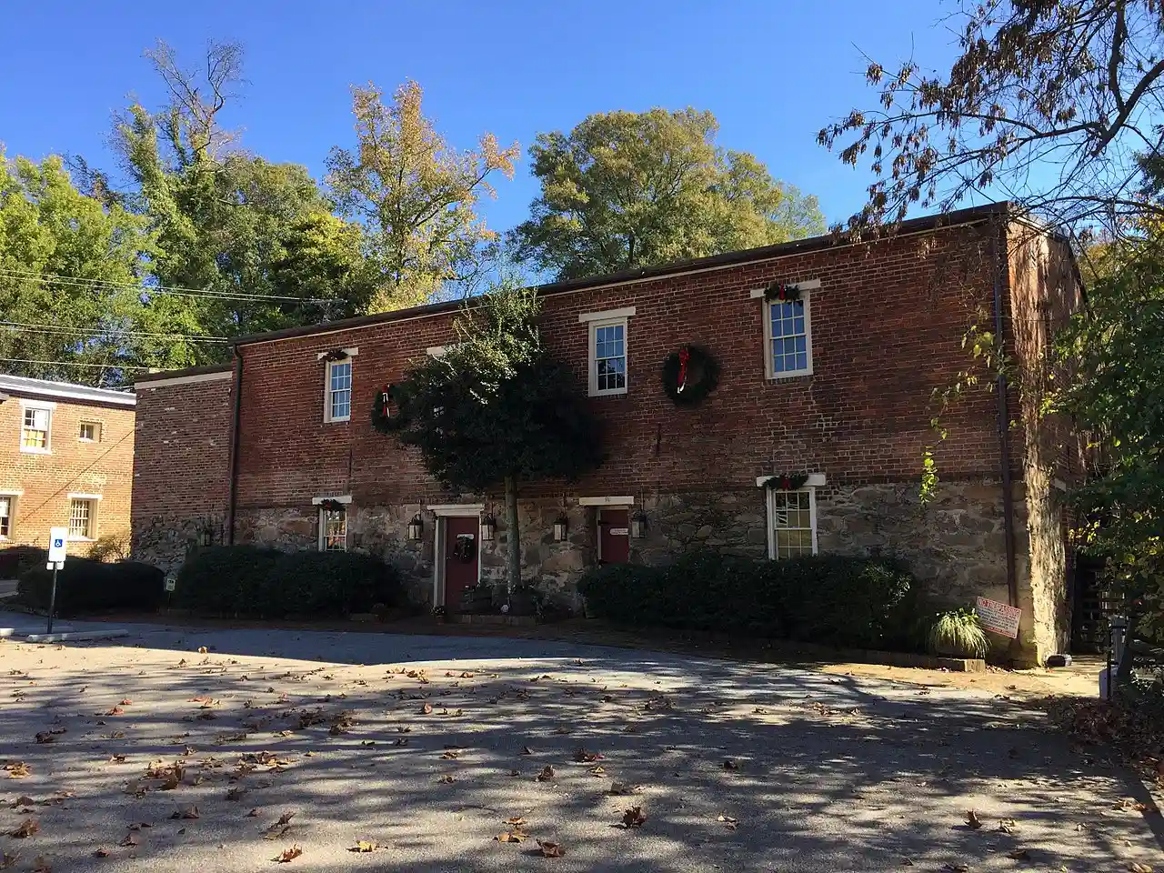 The Swift Creek Mill is a historic grist mill at 17401 Jefferson Davis Hwy in South Chesterfield, Virginia, just across Swift Creek from the city of Colonial Heights. Built about 1850, the present brick mill structure is one of a long line of mills that have occupied this site since the mid-17th century. The mill was adapted for use as the Swift Creek Mill Theater in the 1960s. It was listed on the National Register of Historic Places in 1974. Read more on Wikipedia
