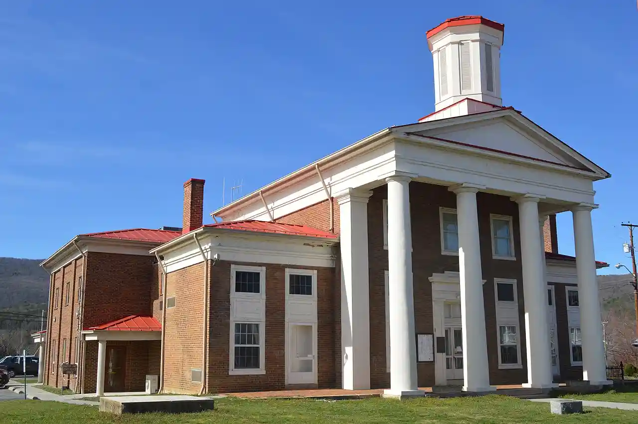 New Castle Historic District is a national historic district located at New Castle in Craig County, Virginia, United States. It encompasses 111 contributing buildings, 2 contributing sites, and 1 contributing object in the central business district and surrounding residential areas of New Castle. The focal point of the district is the Craig County Courthouse. It was built about 1850, and is a temple-form structure with shallow gable roof, a two-story tetrastyle Greek Doric order portico and wooden hexagonal cupola. Associated with the courthouse is the sheriff's house and old jail. Other notable buildings include the Central Hotel, First National Bank Building, Layman Insurance Agency building, Givens-McCartney House (1837), Caldwell-Berger-Lamb House (c. 1852), Bank of New Castle (c. 1900), Farmers and Merchants (F&M) Bank of Craig County (1917–1920), Wagener Brothers Store (c. 1890), Bill Caldwell General Store, George W. Craft (c. 1890), New Castle Methodist Episcopal Church (c. 1893), and Masonic Temple (1940).; and Accompanying photo (1973) and Accompanying photo (1993) Read more on Wikipedia