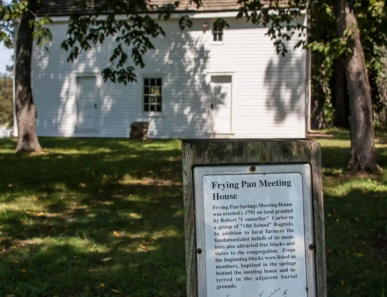 The Frying Pan Meetinghouse (also known as Frying Pan Old School Baptist Church (1832) or Frying Pan Spring Meeting House) is a historic church building within Frying Pan Farm Park in Floris, Virginia. Read more on Wikipedia