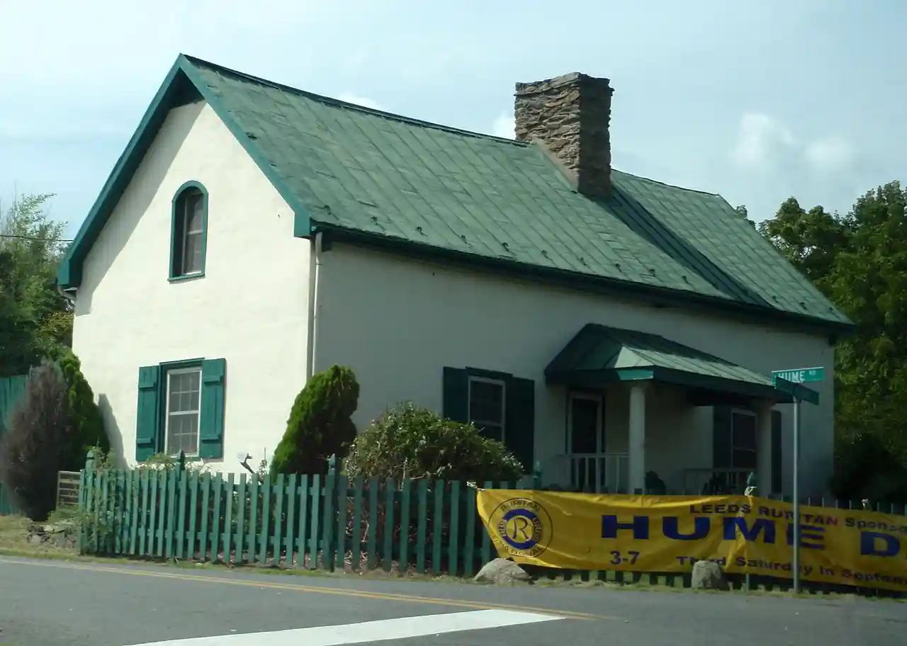 Hume Historic District is a national historic district located at Hume, Fauquier County, Virginia. It encompasses 59 contributing buildings in the rural village of Hume. The majority of the buildings in the district are vernacular in nature and are late-19th- to early- 20th-century frame dwellings of the side-passage and I-house form. It also contains three commercial buildings, a church, two schools, and a former tavern. Notable buildings include Barbee's Tavern (c. 1787), "The Dell," the parsonage for Leeds Church (c. 1855), former Captain Marshall's Store (c. 1860), the African-American Hume School (c. 1906), the former Hume Methodist Church (c. 1900), and the Hume Baptist Church (1921). and Accompanying four photos Read more on Wikipedia