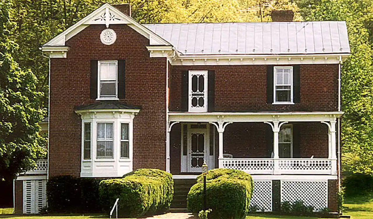 Evergreen, also known as the Callaway-Deyerle House, is an historic home located near Rocky Mount, Franklin County, Virginia. The original section, now the rear ell, was built about 1840, is a two-story, two-bay, rectangular brick dwelling with a hipped roof in a vernacular Greek Revival style. A two-story front section in the Italianate style was added about 1861. A side gable and wing addition was built at the same time. Also on the property are a contributing silo (c. 1861), barn (c. 1920), and tenant house (c. 1930). and Accompanying two photos The silo on site is one of the earliest all brick grain silos in this part of the country. Read more on Wikipedia