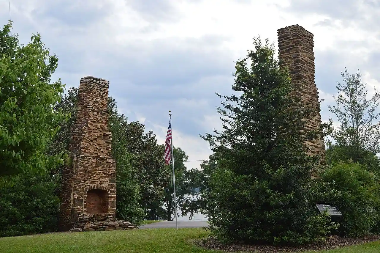 Gwin Dudley Home Site, also known as Twin Chimneys, is a historic home site located at Smith Mountain Lake, Wirtz, Franklin County, Virginia. The site consists of two extant stone chimneys that are situated 31 feet, 8 inches apart (inside face to inside face), indicating the length of the house, which was lost to fire in the early 20th century. They were part of a house erected about 1795. and Accompanying four photos Read more on Wikipedia
