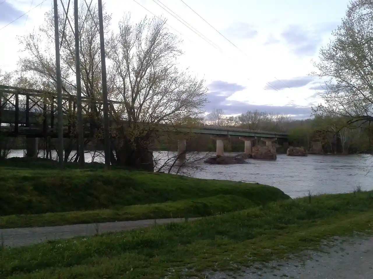 Cartersville Bridge is a historic bridge located near Cartersville, Cumberland County, Virginia. The original bridge was constructed in 1822, and its five stone piers of rough cut ashlar and rubble and two stone abutments remain. Atop them is a superstructure constructed in 1883-84 of heavy timber members with cast-iron connections arranged to form a truss configuration based on the Pratt truss. The bridge is composed of six spans with an end-to-end length of . and Accompanying photo Read more on Wikipedia