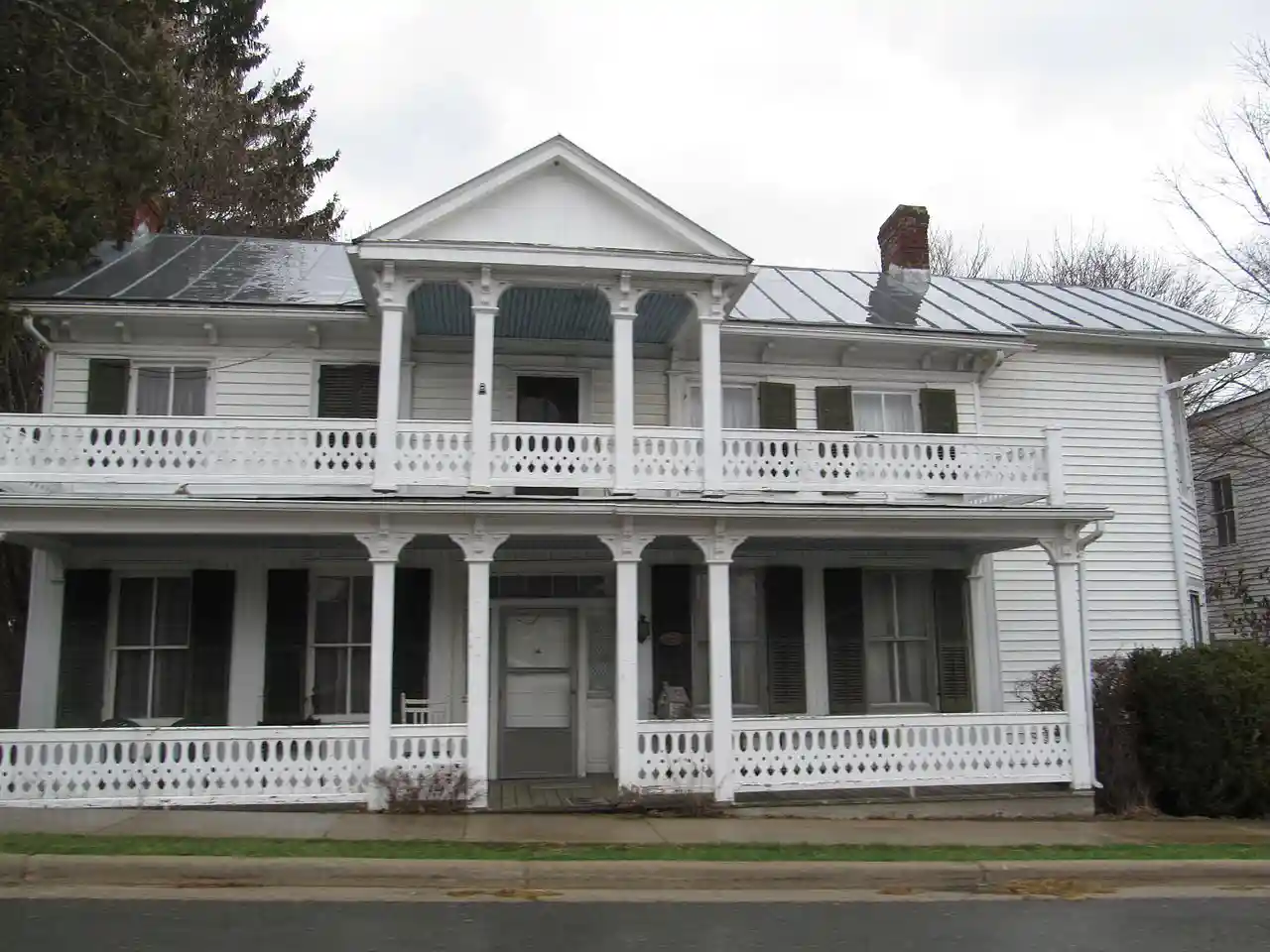 C.P. Jones House and Law Office, also known as the Jones-McCoy House, Almond-Strickler House, and James Bell House, is a historic home and law office located at Monterey, Highland County, Virginia. The original section of the house dates to about 1850. Originally the house was a two-story, five-bay, side-gabled, four-room log building on a stone foundation. Several rooms and porches were added between the middle of the 19th century and the beginning of the 20th century and has a Folk Victorian style. The law office was built about 1873, and is a one-story, front-gable, frame building. Also on the property are the contributing two-story, side-gabled garage/smoke house/woodshed, a one-story, front-gabled apple shed/cellar, a one-story brick spring house ruin. It was the home of American soldier and politician Charles Pinckney Jones (1845-1914). and Accompanying six photos Read more on Wikipedia