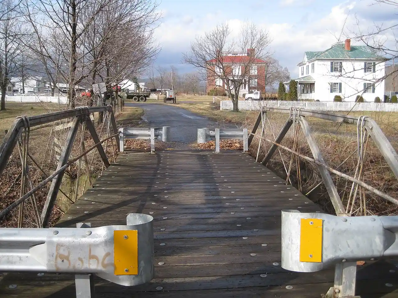 Crab Run Lane Truss Bridge is a historic Truss bridge located on State Route 645 in McDowell, Highland County, Virginia. It was built in 1896, by the West Virginia Bridge Works of Wheeling, West Virginia. It is a single-span, four-panel pony truss measuring long, wide, and tall. Much of the bridge is constructed of bent and straight steel railroad rails. The bridge was taken out of service for vehicular traffic in 1994; it is now used to carry pedestrian and bicycle traffic. and Accompanying four photos Read more on Wikipedia