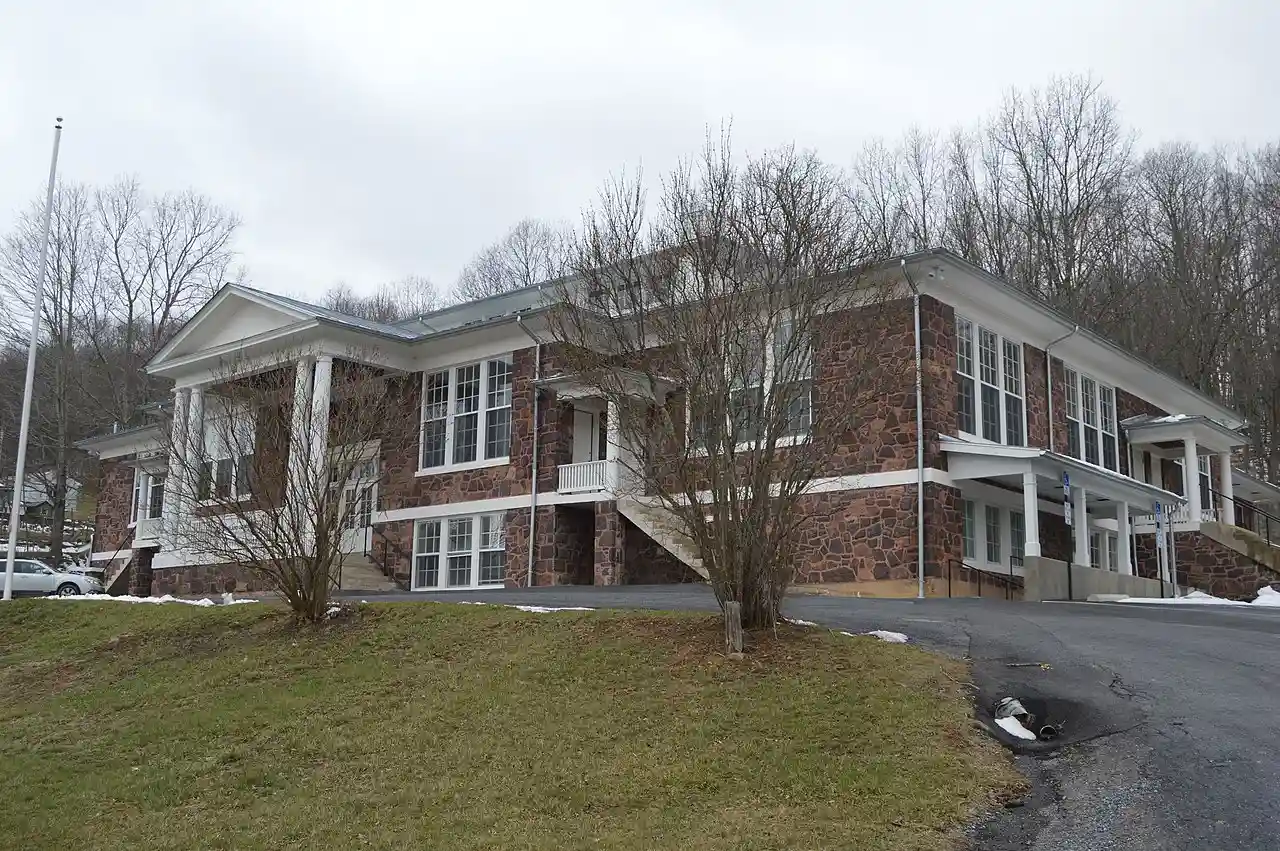 Monterey High School, also known as Highland High School, Monterey Elementary School, Highland Elementary School, and Highland Center, is a historic school building located at Monterey, Highland County, Virginia. It was built in 1922, and is a one-story, hipped roof garnet sandstone structure in the Classical Revival-style. The three-bay facade consists of two side classroom wings with the central entry portico. It has a multiple hipped roof, symmetrical facade, and portico supported by Doric order columns. The school closed in 1997, and subsequently housed the Highland Center. and Accompanying photo Read more on Wikipedia