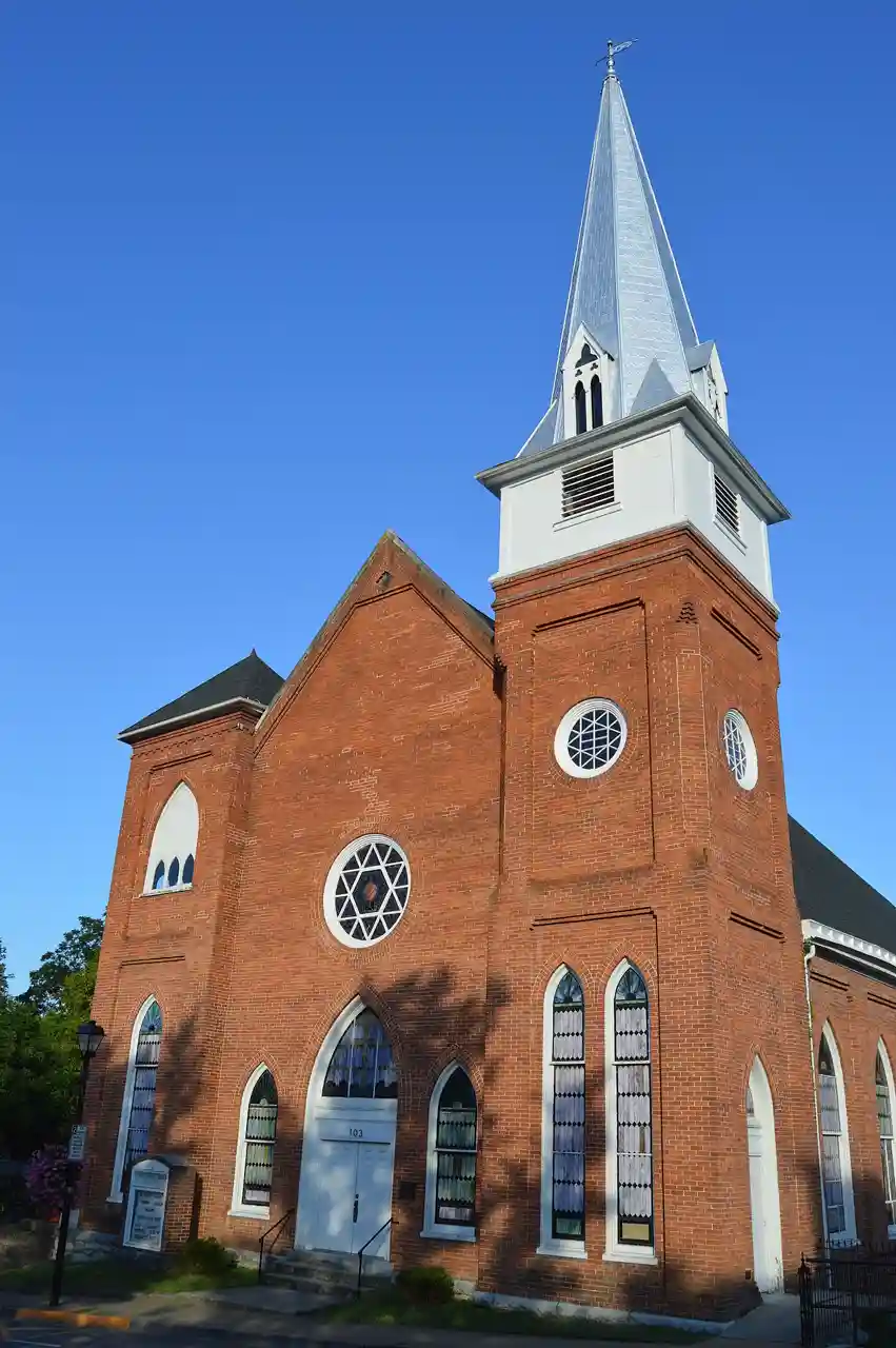 First Baptist Church, originally known as Lexington African Baptist Church, is a historic Baptist church building in the city of Lexington, Virginia, United States. It was built between 1894 and 1896, and is a large brick church on a limestone basement in the Gothic Revival style. It has a front gable roof, round and lancet-arch stained glass windows, and towers at its two front corners. The right hand tower has a belfry and spire. The interior consists of a barrel-vaulted auditorium with a gallery on turned posts and the basement has classroom and meeting spaces. Historically First Baptist played a central role in the life of Lexington's African-American community. and Accompanying four photos Read more on Wikipedia