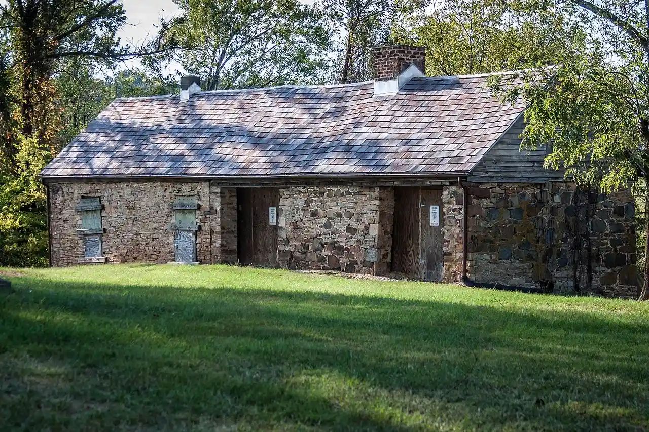 The Arcola Slave Quarters were built circa 1800 on the grounds of the Lewis plantation at Arcola in Loudoun County, Virginia. The plantation house was replaced by a different house in the 1930s on the original foundation, but the slave quarters remain. The stone structure is a double-pen building built into an embankment downhill from the main house. The western end is older, with two connecting rooms and a cellar, accessible through a hole in the floor. The eastern end consists of two rooms, connected to the original wing by a breezeway. Each block has a central chimney with two hearths. The walls are stone rubble construction with timber roof construction. A loft, probably a later addition, has been created in the attic space. The floors are dirt, except for the room over the cellar, which is wood. The roof is asphalt roll roofing over plywood, but traces of the older wood shake roof remain. There are several window openings which do not appear to have been glazed, but rather shuttered. Read more on Wikipedia