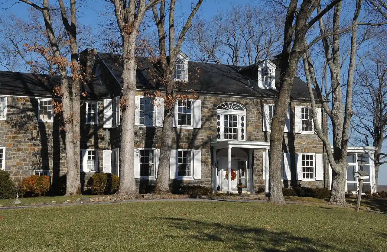 Murray Hill is an estate at 42910 Edwards Ferry Road, in Loudoun County, Virginia near Leesburg. Just shy of , the property includes a 1938 Colonial Revival house, as well as an early 19th-century log dwelling and a number of agricultural outbuildings dating mostly to the 19th century. The main house was built by Stirling Murray Rust, and is a conscious emulation of his family's homestead Rockland, located a few miles away. The estate is within the bounds of the theater of the American Civil War Battle of Ball's Bluff; artifacts related to military movements around the battle have been found on the property, as is a portion of a roadway used by Union forces. Read more on Wikipedia
