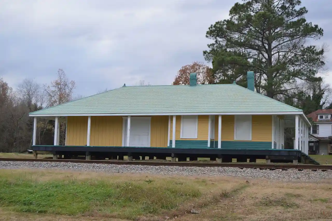 Fort Mitchell Depot is a historic railway depot located at Fort Mitchell, Lunenburg County, Virginia. It is a one-story, four-bay, rectangular frame vernacular building that is approximately 20 feet wide and 48 feet long. It consists of two sections: the rear, freight portion of the depot, built about 1860, of heavy timber, mortise and tenon construction and clad with board and batten siding; and the front passenger portion of the depot built about 1884. The passenger portion consists of two segregated waiting rooms separated by a vertical, beaded board wall. It ceased use as a passenger station in 1956. and Accompanying four photos Read more on Wikipedia