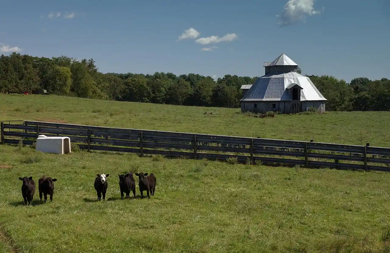 The Hoffman Round Barn, also known as Gentry Round Barn, is a historic round barn and national historic district located near Wolftown, Madison County, Virginia. The district encompasses two contributing buildings, one contributing site and one other contributing structure. The barn was built in 1913. It is a -story, wood frame barn with 12 sides and a 12-sided standing-seam metal, mansard-like roof. A wooden center silo protrudes several feet above the level of the main roof, has a gable-roofed dormer on the east side, and is capped by a metal roof, resembling a cupola. Associated with the barn are the contributing Hoffman farmhouse and family cemetery. and accompanying four photos Read more on Wikipedia