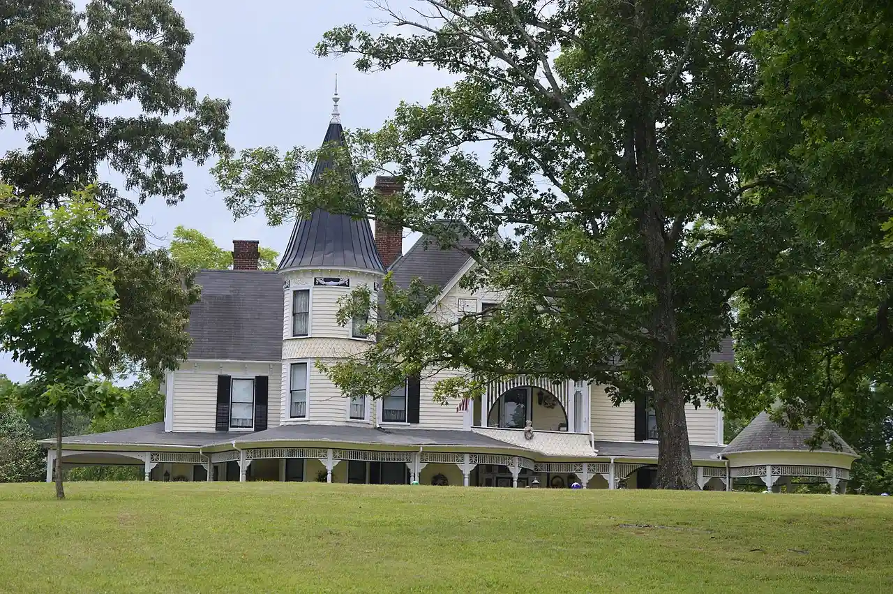 On the Hill is an historic house at 982 Jefferson Street in Boydton, Virginia. The oldest portions of the house were built as a farmhouse in the early 19th century. In the late 19th century the Finch family hired a prominent local contractor, Jacob Holt, to transform the house into an elaborate Queen Anne residence. It has a three-story turret, and a porch that extends across the whole width of the house. The porch is decorated with bracketed eaves, and the house's main gable is decorated with carved woodwork. Read more on Wikipedia
