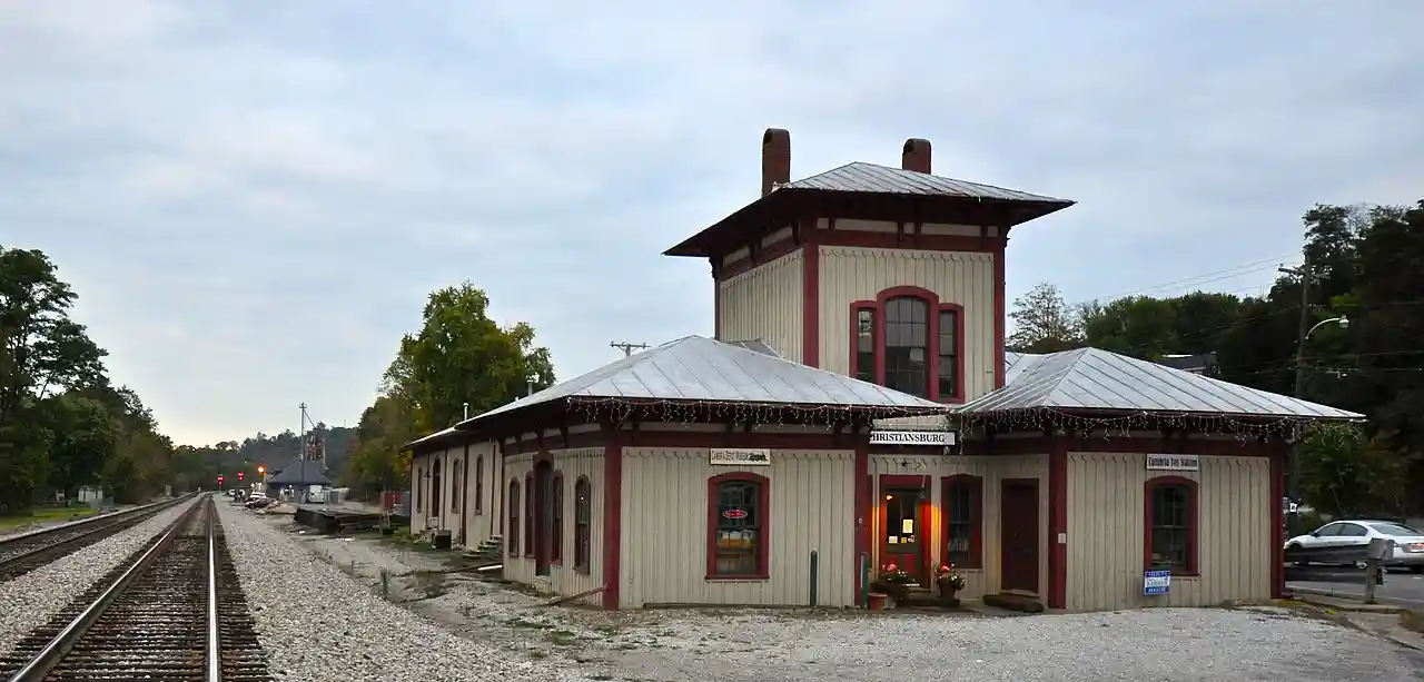 Cambria Freight Station, also known as Christiansburg Depot, is a historic freight station located at Christiansburg, Montgomery County, Virginia, US. It was built in 1868–1869, and is a wood-framed, one-story, U-shaped structure with a shallow hipped roof and deeply overhanging eaves in the Italianate style. A portion of the center section rises to form a tower-like second-story room, covered with an even shallower hipped roof. A long, one-story freight section extending eastward from the rear. The building also served as a passenger station, until Christiansburg station was built nearby in 1906. and Accompanying photo The building houses a local history museum known as the Cambria Depot Museum. Read more on Wikipedia