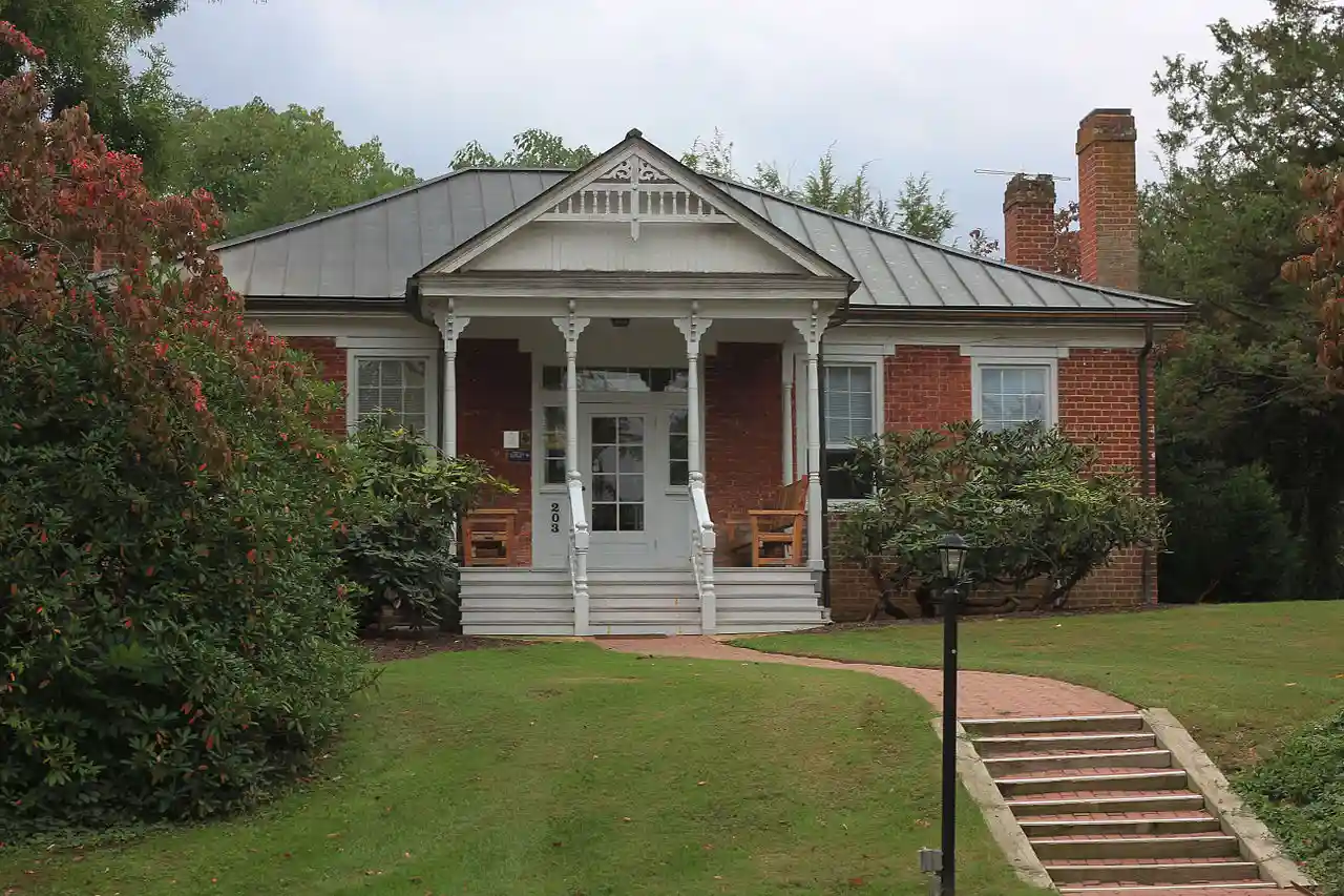 The Phillips–Ronald House, also known as the Carrington Lybrook House and Five Chimneys, is a historic home located at Blacksburg, Montgomery County, Virginia. It was built in 1851–1852, and is a one-story, brick dwelling with a hipped roof and double-pile, central-passage plan. It features a late-19th century, three-bay central entrance porch with sawn brackets and spindles in the gable and slender turned posts. Also on the property is a contributing frame garage. and Accompanying photo Read more on Wikipedia